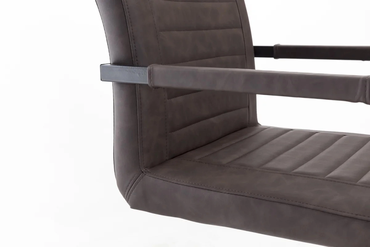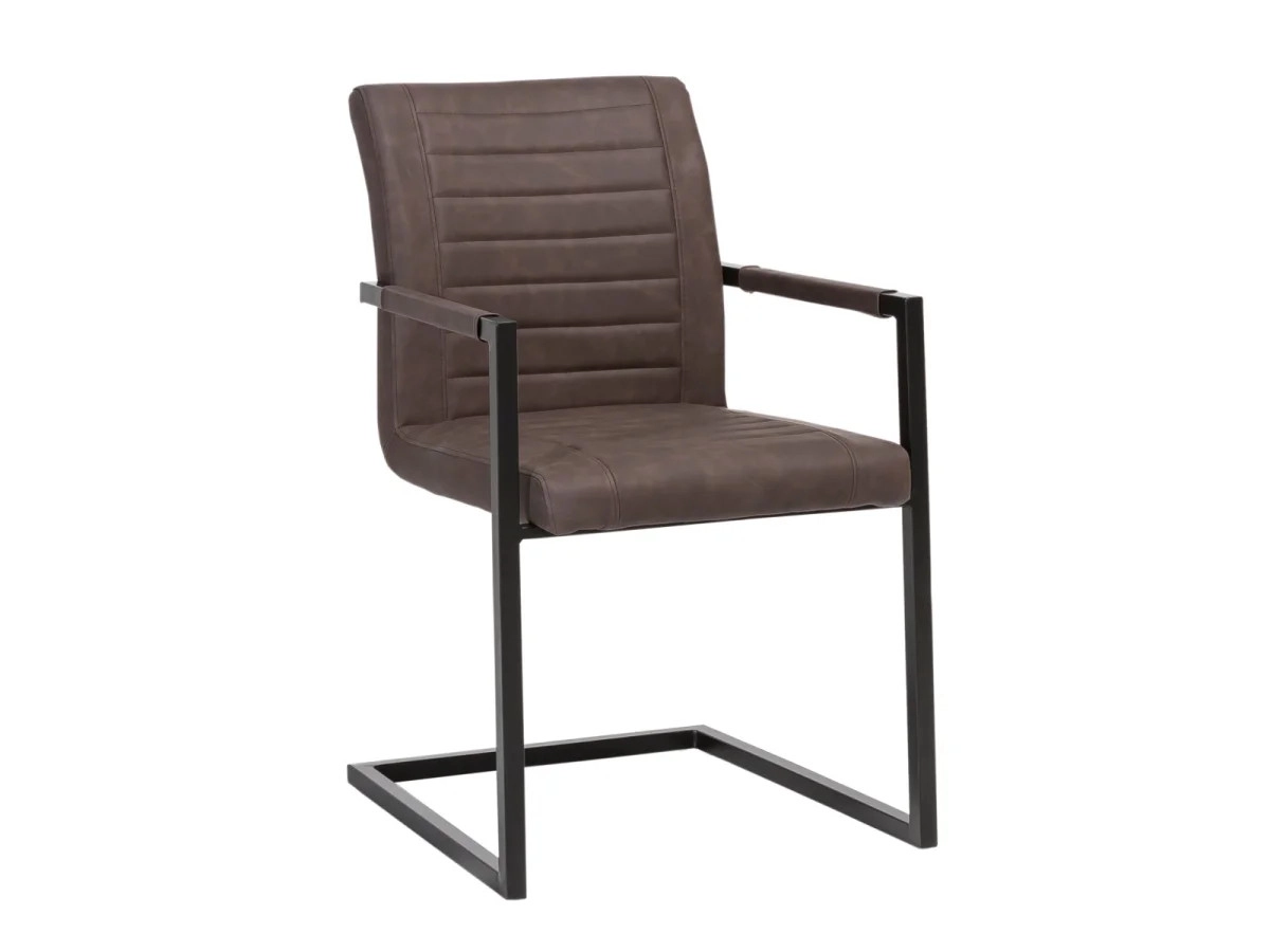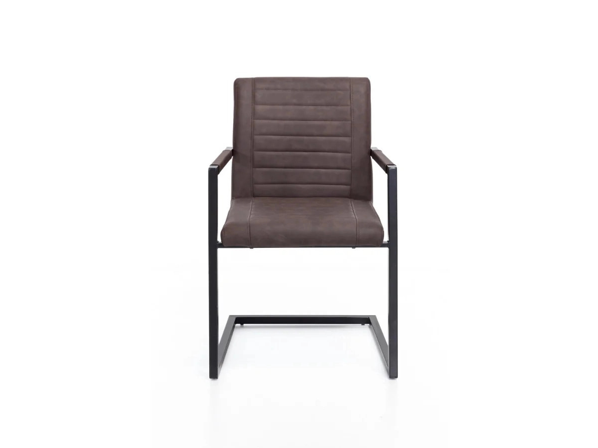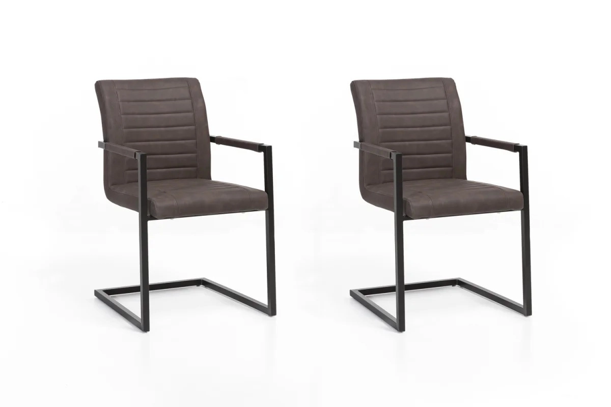 Die massive Stuhl mit Armlehnen Picton in eleganter brauner Farbe bringen Harmonie zwischen traditionellem Design und modernem Komfort in Ihr Esszimmer. Ihre robuste Konstruktion aus hochwertigem Metall garantiert Langlebigkeit und Stabilität, während die Oberfläche aus angenehmem Kunstleder einen anspruchsvollen Look sowie leichte Pflege bietet. Dank der ergonomisch geformten Armlehnen und den optimalen Abmessungen von 54 × 57 × 87 cm sitzt man auf diesen Stühlen auch bei längeren Zusammenkünften bequem, was jeder zu schätzen weiß, der gerne Zeit bei gemeinsamen Familien- oder Freundesessen verbringt. Der braune Farbton der Kunstlederpolsterung in Kombination mit dem Metallrahmen schafft einen Kontrast, der sowohl industriellen als auch rustikalen Einrichtungsstil unterstreicht und sich gleichzeitig leicht mit verschiedenen Farbschemata kombinieren lässt.