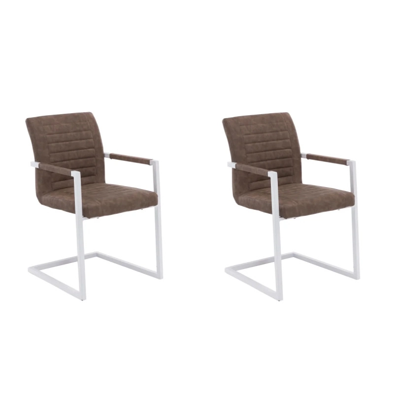 Proč nezařadit do vašeho domova kousek elegance s moderním nádechem? Sada 2 houpacích křesel Picton vás okouzlí nejen svým stylovým designem, ale i výběrem materiálů. Tyto židle jsou obaleny kvalitní světle hnědou umělou kůží, která dodává na luxusu a zároveň zajišťuje snadnou údržbu a odolnost proti opotřebení. Bílá kovová konstrukce nejen že přidává na vizuální lehkosti, ale zároveň garantuje stabilitu a dlouhou životnost každého kusu.