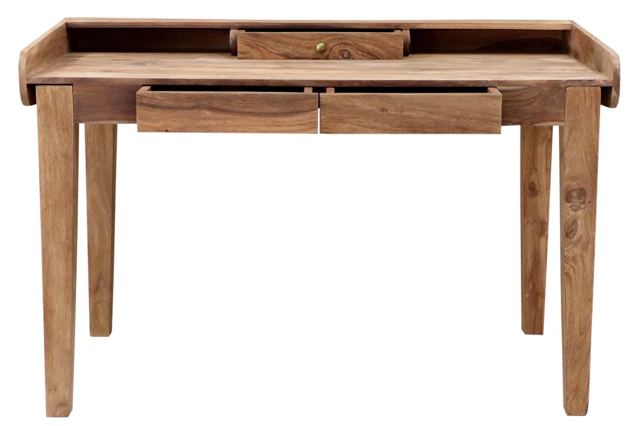 Tento dřevěný nábytek je ideální volbou pro ty, kteří ocení autentický design a přirozenou krásu. Pracovní stůl nabízí dvě praktické šuplíky, které poskytují dostatek prostoru pro organizaci kancelářských potřeb, dokumentů či osobních věcí. Šířka 130 cm a hloubka 70 cm zajišťují dostatek prostoru pro pohodlnou práci či studium a výška 85 cm se postará o správnou ergonomii při dlouhém sezení.