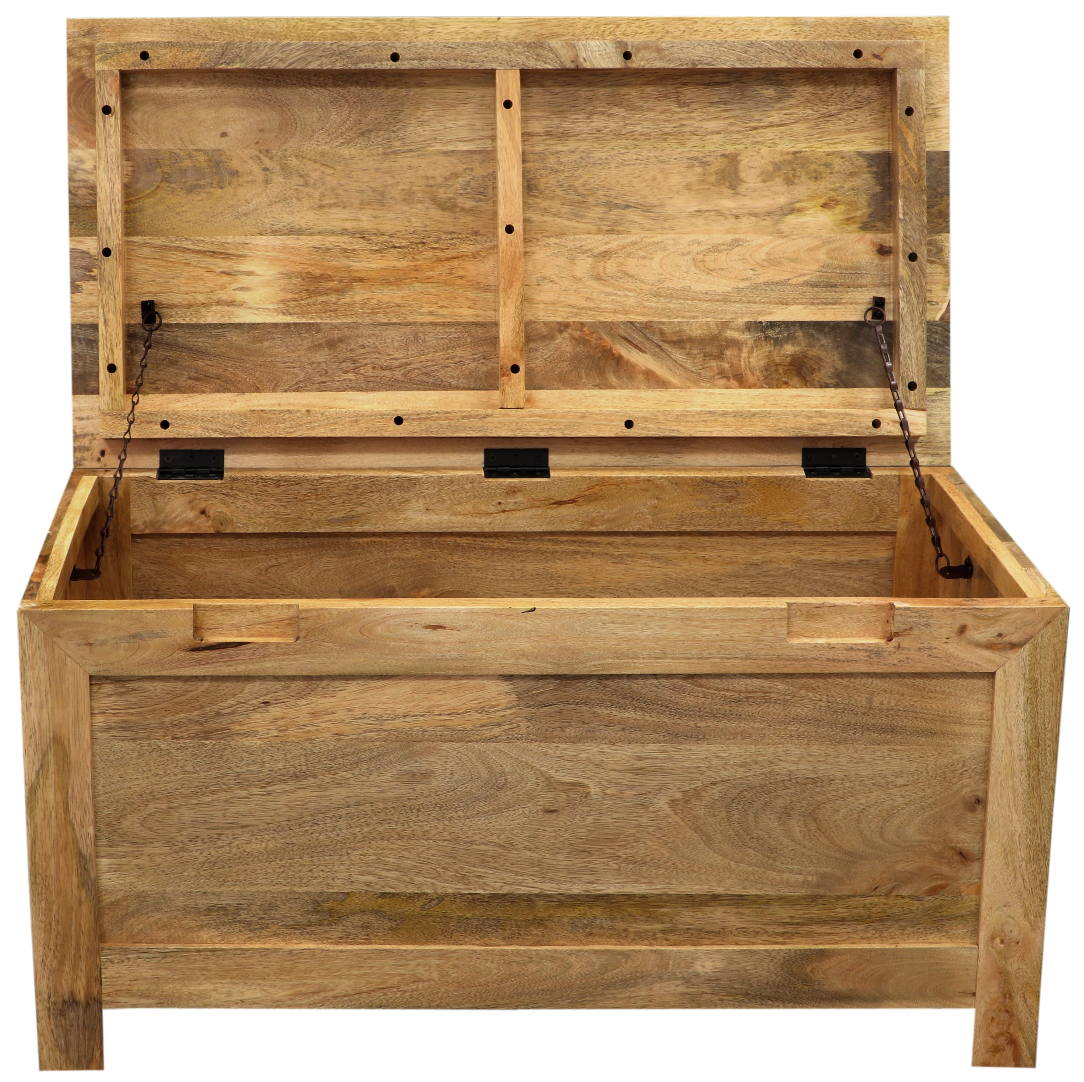 Odhalíte krásu a funkčnost vašeho domova s naší úložnou truhlou z mangového dřeva. Tato elegantní úložná truhla o rozměrech 90x45x45 cm představuje dokonalou kombinaci klasického designu a všestranného úložného prostoru, což je ideální pro každý interiér. Vyrobena z prvotřídního mangového dřeva pocházejícího z Indie, nabízí tato úložná truhla nejen trvanlivost, ale také exotickou estetiku, která přidává vaší domácnosti dotek elegance. Přírodní dřevěná textura a bohaté tóny dodávají pocit tepla a útulnosti, zatímco prostorný interiér umožňuje efektivně ukládat vaše cennosti, textilie nebo sezónní dekorace. Díky svým kompaktním rozměrům je ideální pro umístění do obývacího pokoje, ložnice nebo dětského pokoje.