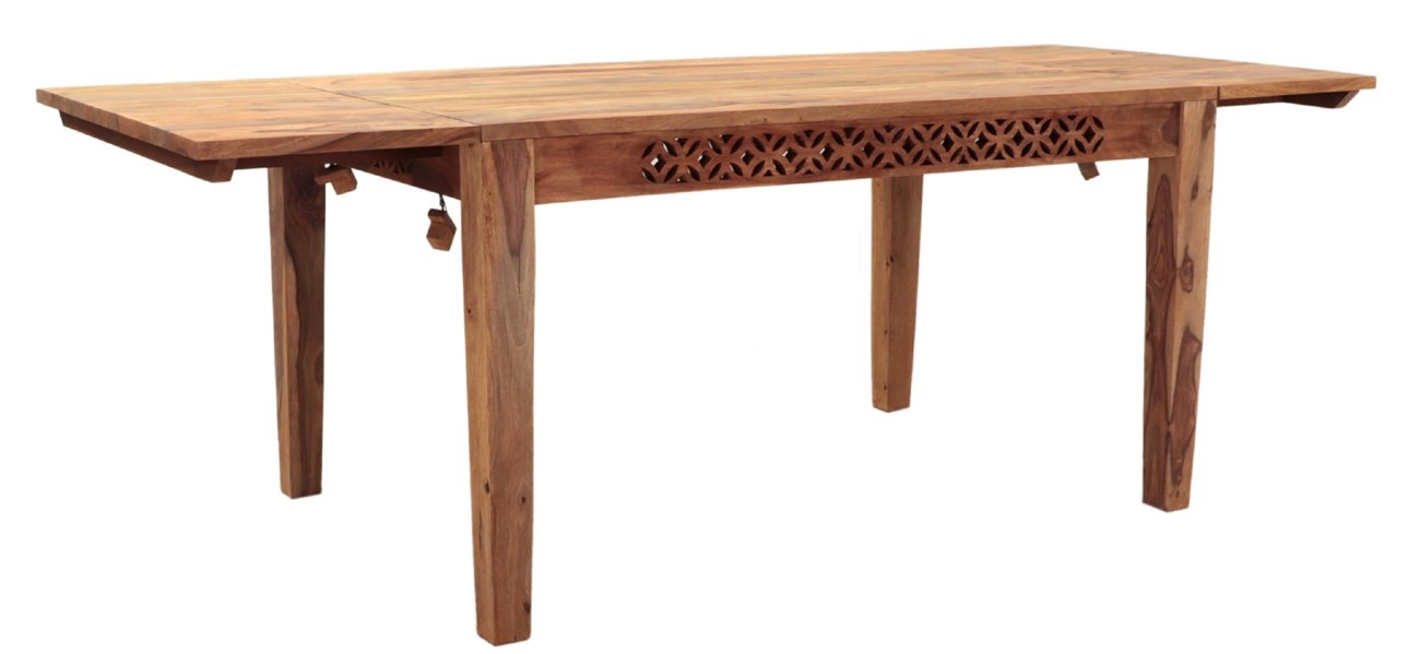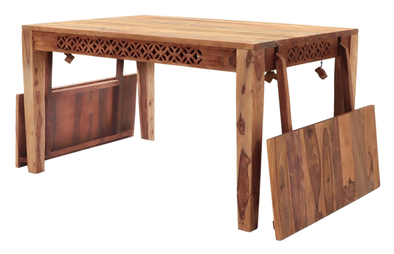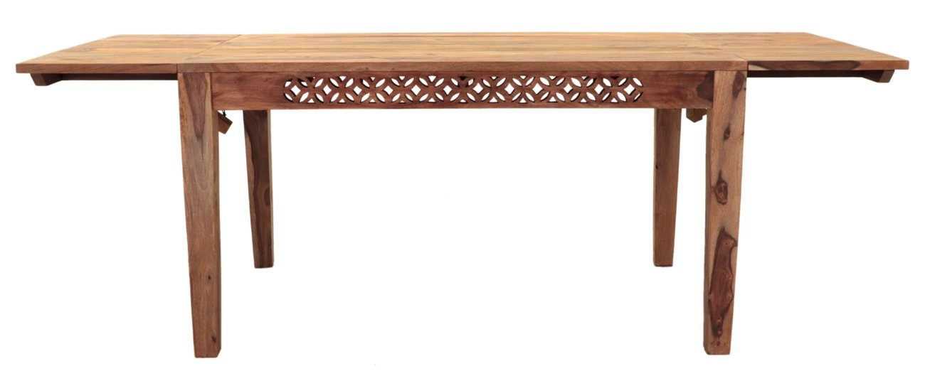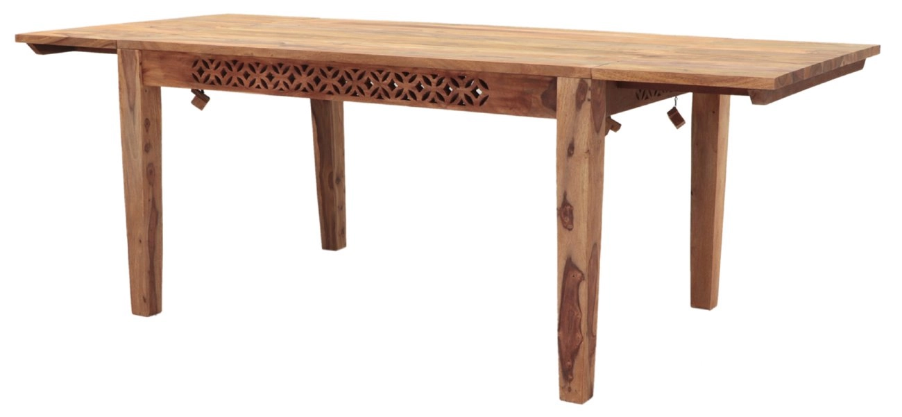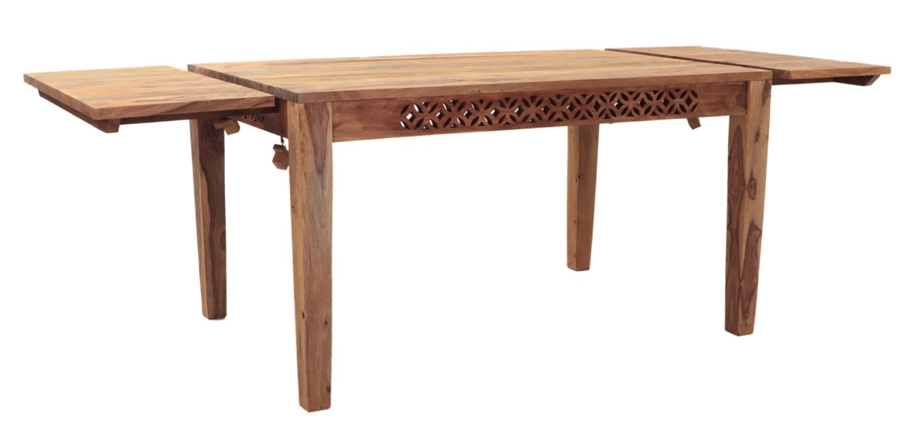 Důraz na kvalitu podtrhuje použití indického palisandru, exotického dřeva známého svou tvrdostí a trvanlivostí. Tento rozkládací jídelní stůl pro 6 osob je tak nejen funkčním, ale i stylovým prvkem vašeho interiéru. Kategorie rozkládacích jídelních stolů nabízí řešení pro každodenní použití i velké rodinné oslavy.