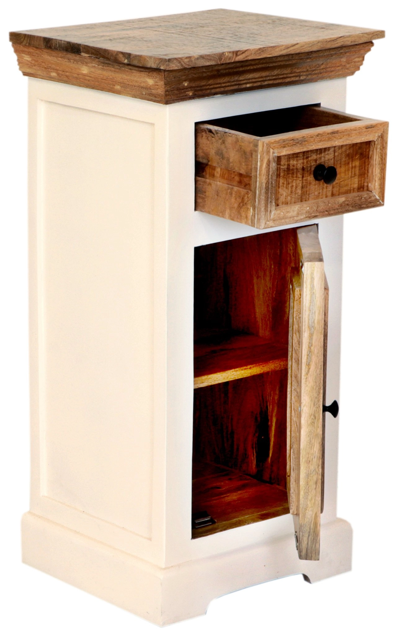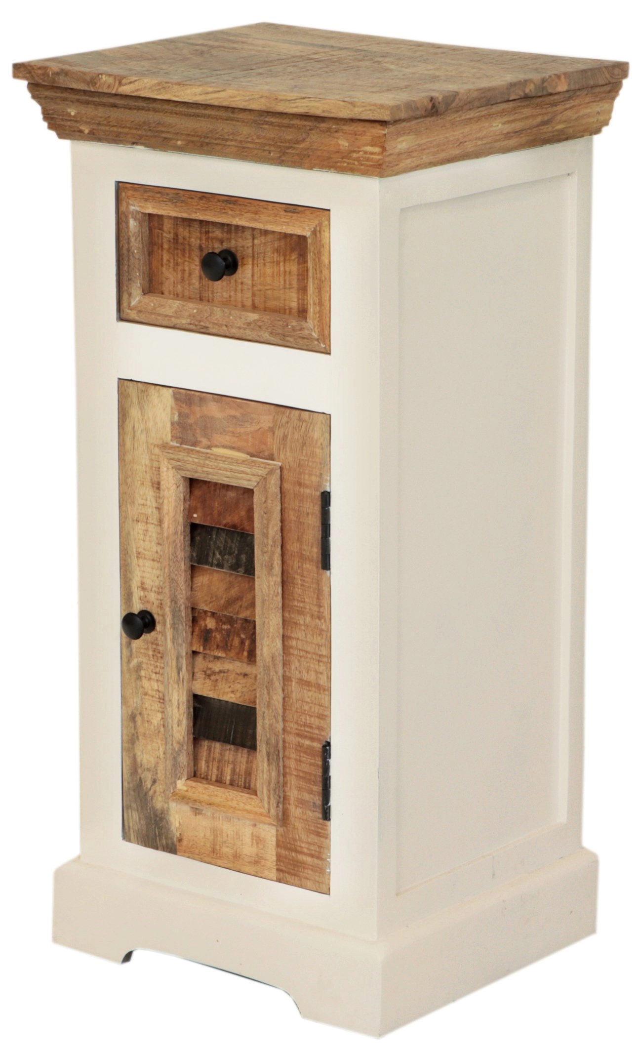 Objevte kouzlo exotiky a elegance s koupelnovou skříňkou z masivu mango o rozměrech 40x80x35 cm. Tato skříňka do koupelny je ideálním řešením pro každého, kdo si přeje dodat své koupelně dotek přirozené krásy a funkčnosti. Mango dřevo pochází z Indie a je známé svou odolností a unikátní texturou, která dodává každému kusu nábytku jedinečný charakter. Tato koupelnová skříňka je navržena s důrazem na praktičnost: nabízí jednu zásuvku a dvířka s prostorným úložným prostorem, kde můžete snadno uložit všechny potřebné koupelnové potřeby. Díky své kompaktní šířce 40 cm a hloubce 35 cm se skříňka vejde i do menších koupelen, zatímco výška 80 cm zajišťuje dostatek úložného prostoru. Spojte design s praktickým využitím a přidejte této krásné indické skříňce místo ve své koupelně!