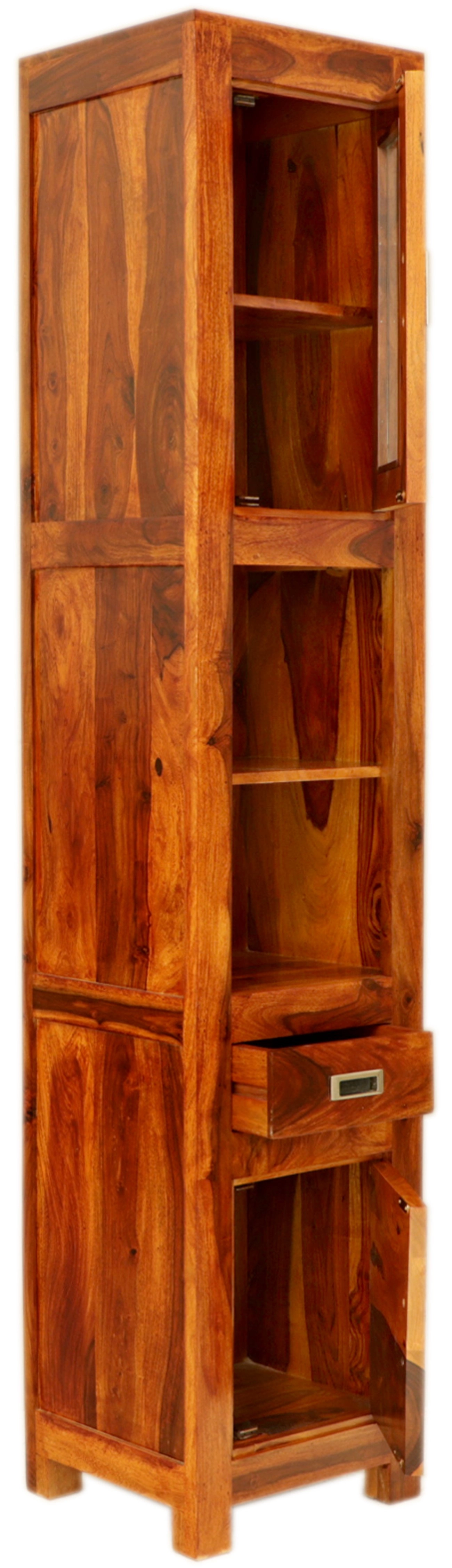 Objevte kouzlo orientu ve své koupelně s naší koupelnovou skříňkou z masivního dřeva palisandru. Tato elegantní skříňka, pocházející přímo z Indie, představuje ideální volbu pro ty, kteří si přejí spojit kvalitu a estetiku. S rozměry 40x35x190 cm se hladce začlení do každé koupelny, aniž by zabírala příliš místa. Kouzlo masivního nábytku do koupelny podtrhuje použití palisandru, dřeva známého svou pevností a krásnou strukturou. Skříňka je vybavena dvěma dvířky a jednou zásuvkou, které poskytují dostatek úložného prostoru pro všechny vaše potřeby.