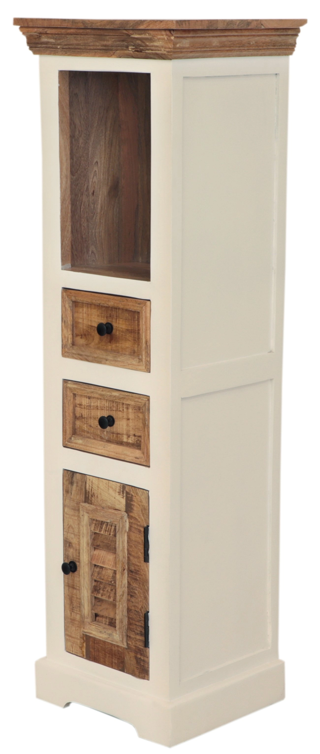 Objevte kouzlo exotického designu s naší jedinečnou skříňkou do koupelny z dřeva manga o rozměrech 40x130x35 cm, která přináší do vaší koupelny kousek Indie. Tento unikátní kousek z nábytku z masivu spojuje praktické úložné prostory s originálním vzhledem, a je tak ideálním řešením pro ty, kdo chtějí dodat své koupelně styl a exotiku. Vyrobená z kvalitního mangového dřeva, je skříňka nejen esteticky přitažlivá, ale i velmi odolná – skvělá volba pro trvalou hodnotu a krásu v koupelně.