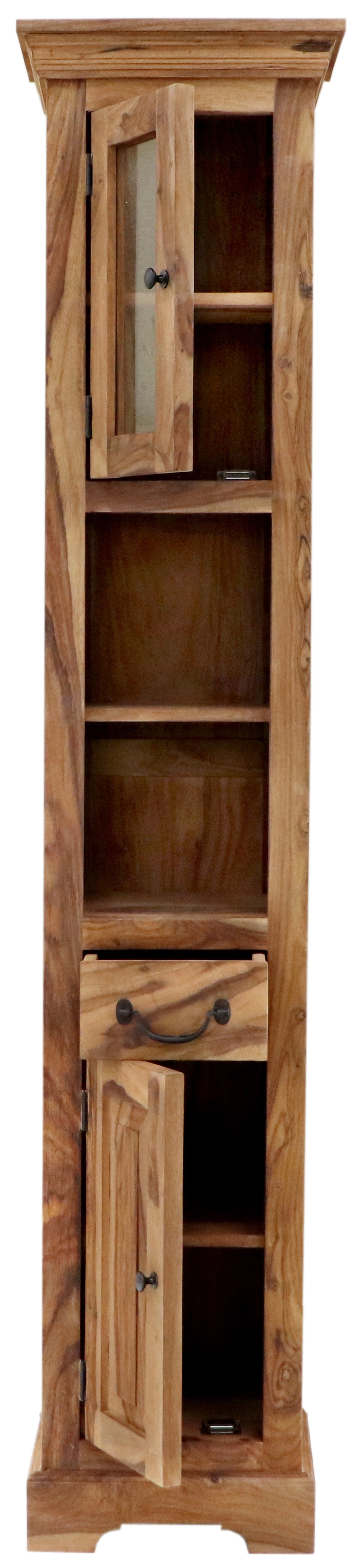 Tento nábytek z masivu do koupelny je navržen s ohledem na praktické využití i dlouhotrvající krásu. Skříňka disponuje dvěma dvířky a jednou zásuvkou, které poskytují dostatek úložného prostoru pro každodenní nezbytnosti, kosmetiku nebo ručníky. Díky výšce 190 cm a kompaktní šířce 40 cm je ideálním řešením pro koupelny všech velikostí, včetně těch, kde je potřeba efektivně využít prostor.