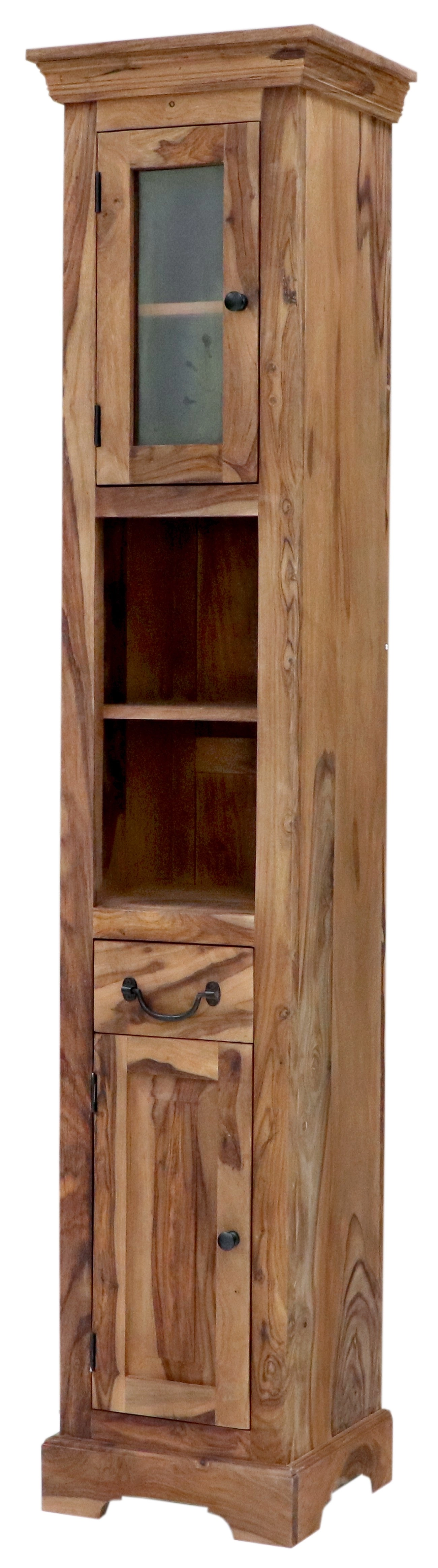 Masivní palisandr z Indie dodává tomuto nábytku do koupelny neopakovatelný charakter a robustnost, což zajišťuje, že tento kus zůstane krásný a funkční po mnoho let. Kombinujte tuto koupelnovou skříňku s dalšími prvky z naší kolekce masivního nábytku, jakými jsou třeba umyvadlové skříňky, závěsné police nebo zrcadlové skříňky a vytvořte harmonický celek ve vaší koupelně.