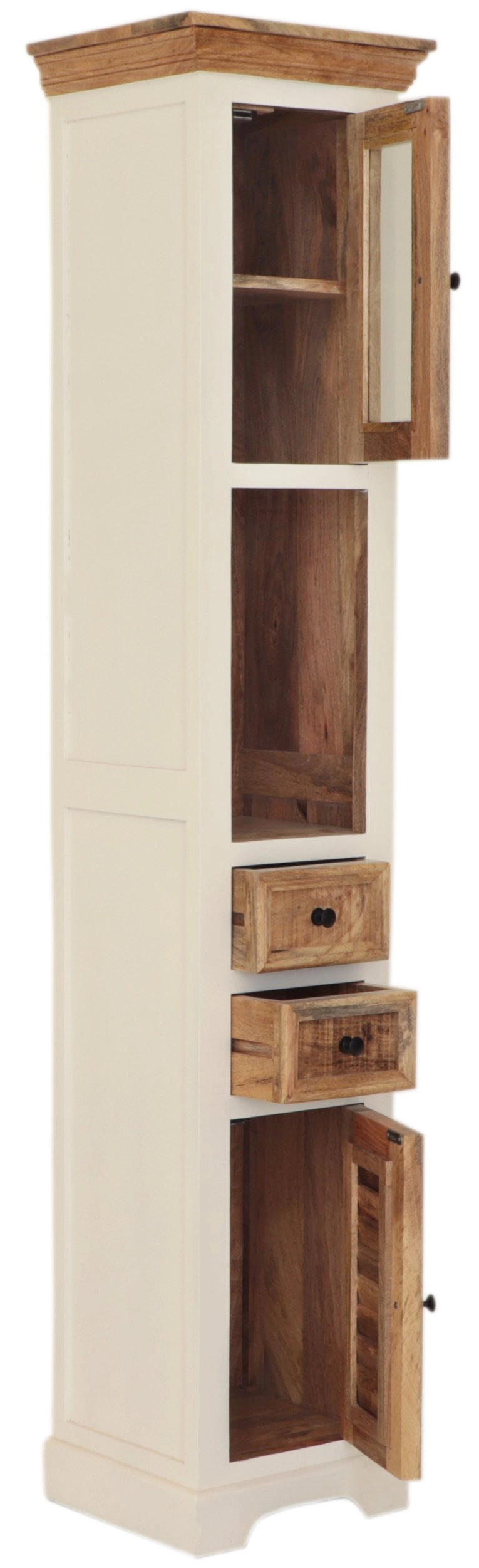 Vydejte se na cestu moderní elegance ve vaší koupelně s naší skříňkou do koupelny z dřeva manga. Tento jedinečný kousek koupelnového nábytku z masivu se pyšní původem z Indie, což z něj činí autentický a exotický doplněk pro vaši domácnost. S rozměry 40x190x35 cm nabízí skříňka dostatek úložného prostoru ve dvou zásuvkách a za dvířky, kde můžete snadno uskladnit veškeré koupelnové potřeby.