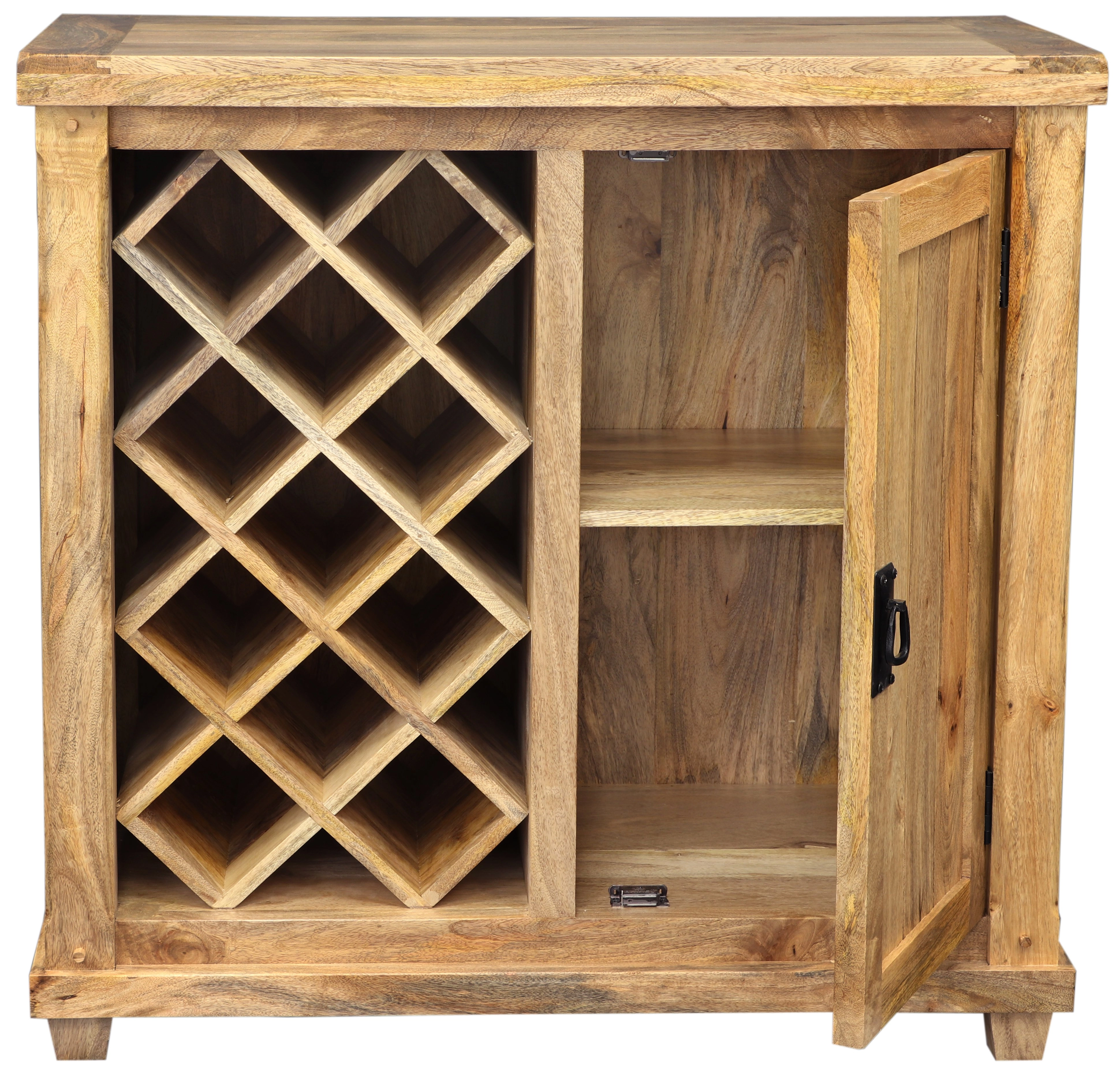 Barové skříně z masivu mango nejsou jen o estetice, ale také o funkčnosti. Nabízí širokou škálu úložných možností - od prostoru pro uložení lahví a sklenic po zásobníky pro barové náčiní a doplňky. Díky pevnému a odolnému materiálu skříň nabízí dlouhou životnost a stabilitu. S původem v Indii tato skříň přináší do vašeho domova nádech exotiky a elegance, což ji činí ideální volbou pro milovníky kvalitního a stylového nábytku.