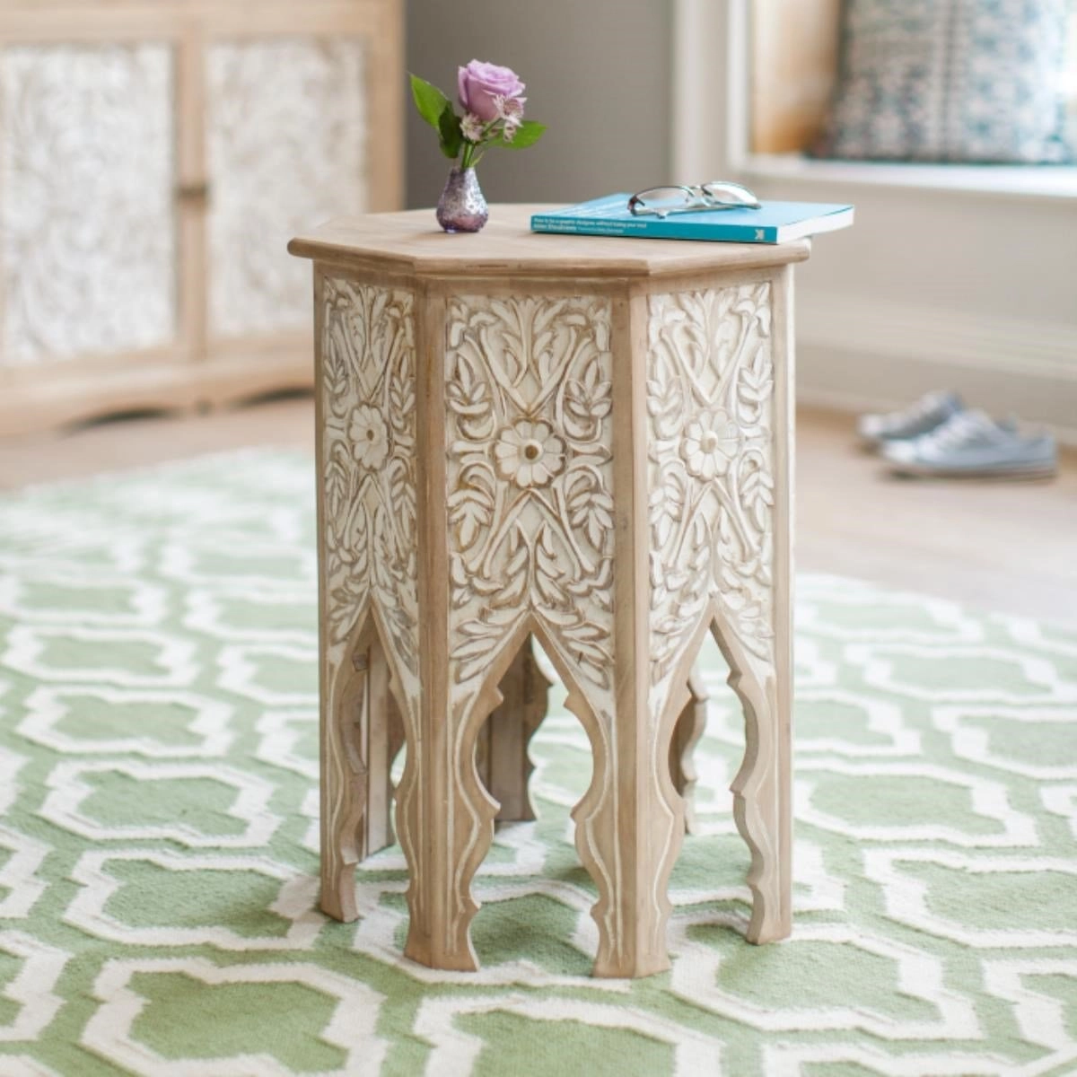 Odkládací stolek Sita z masivu je vyroben z kvalitního masivního mangového dřeva (bez laku). Odkládací stolky které máme skladem se dají prohlédnout osobně nebo objednat na zakázku. Indický koloniální nábytek mango masiv.