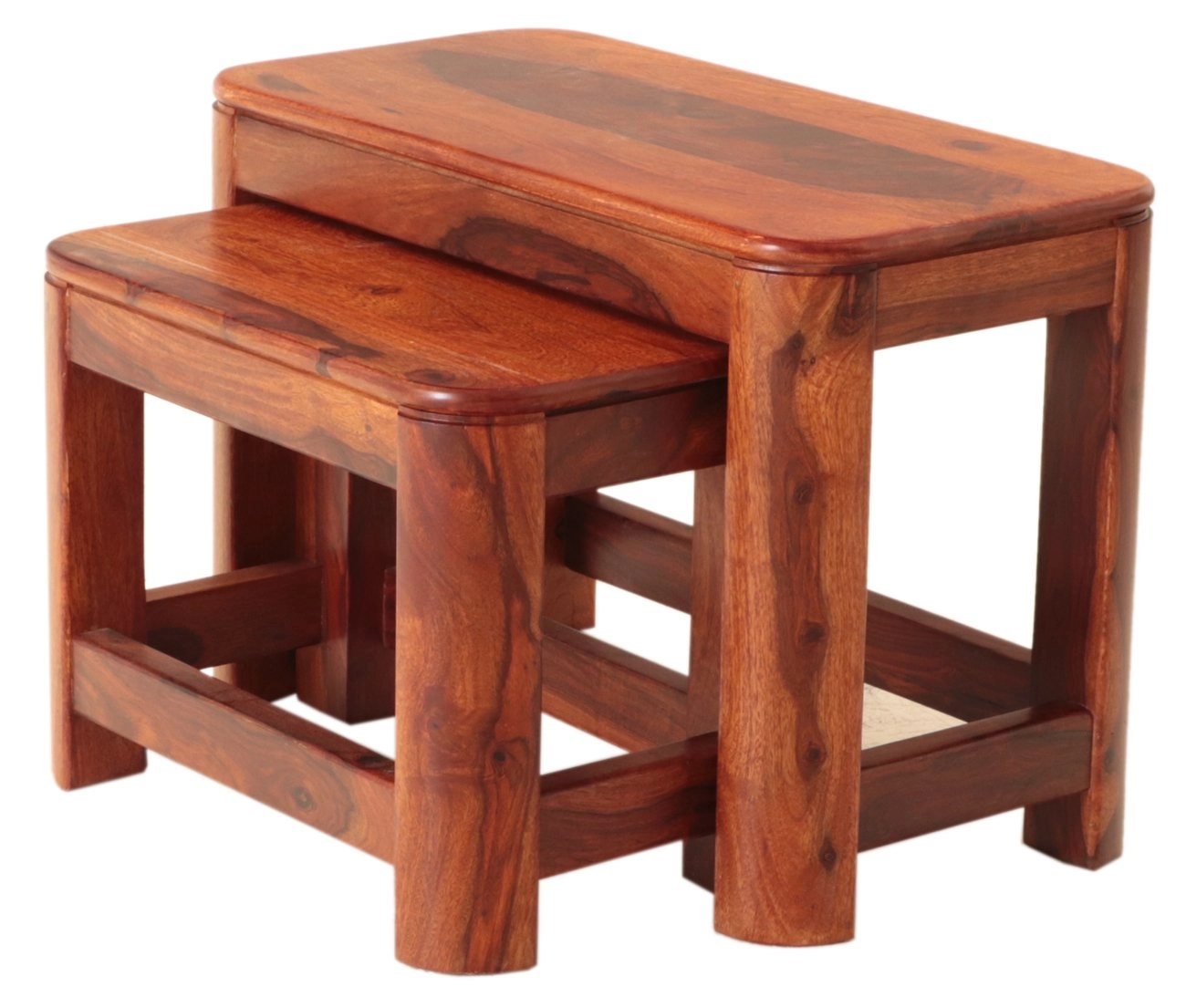 Odkládací stolky z masivu jsou vyrobeny z palisandrového dřeva. Rozměry stolků 59/41/30, 47/35/25. Odkládací stolky z masivu, které máme skladem, si můžete prohlédnout v našem showroomu. Indický koloniální nábytek palisandr (sheesham) masiv.