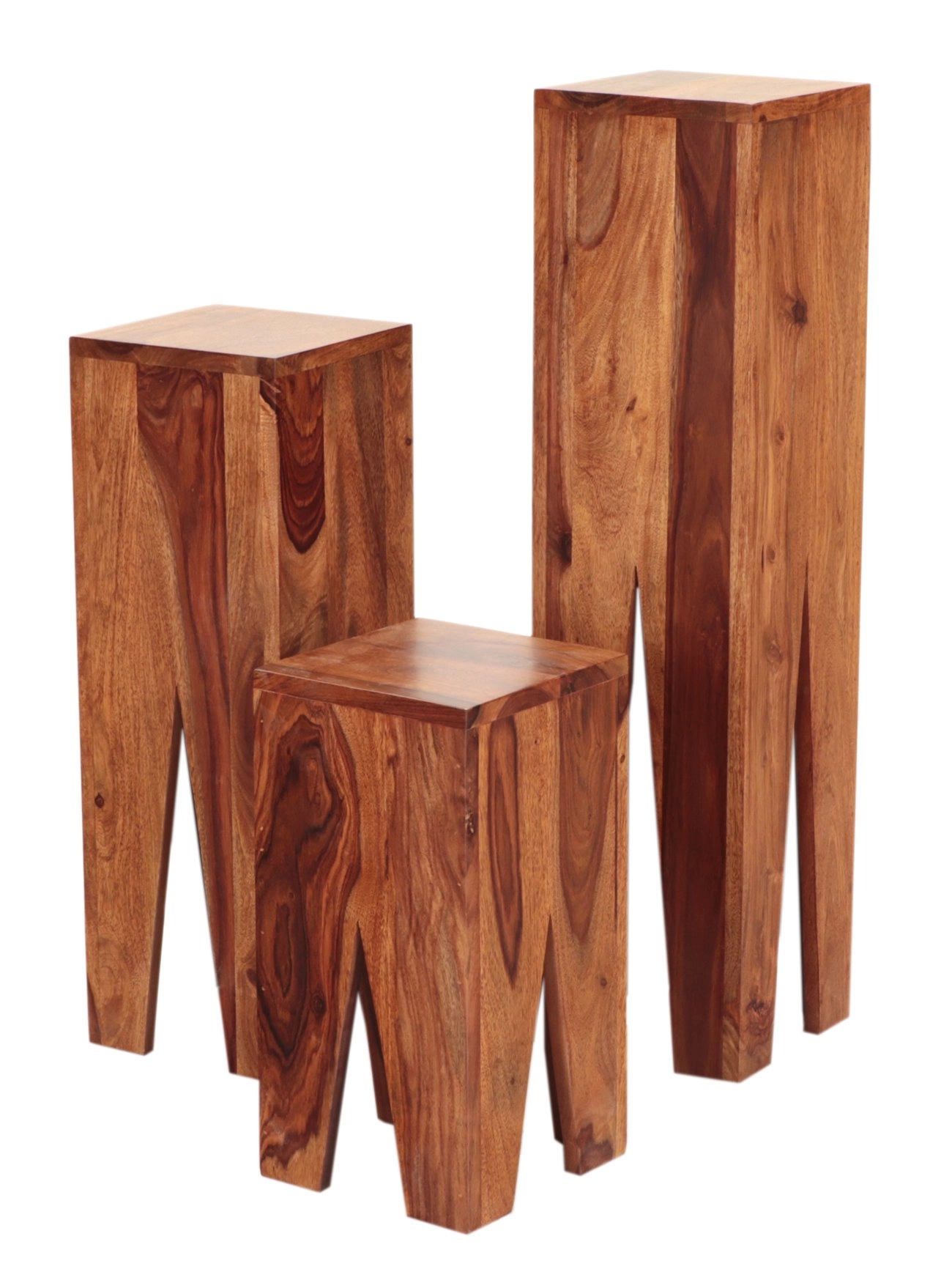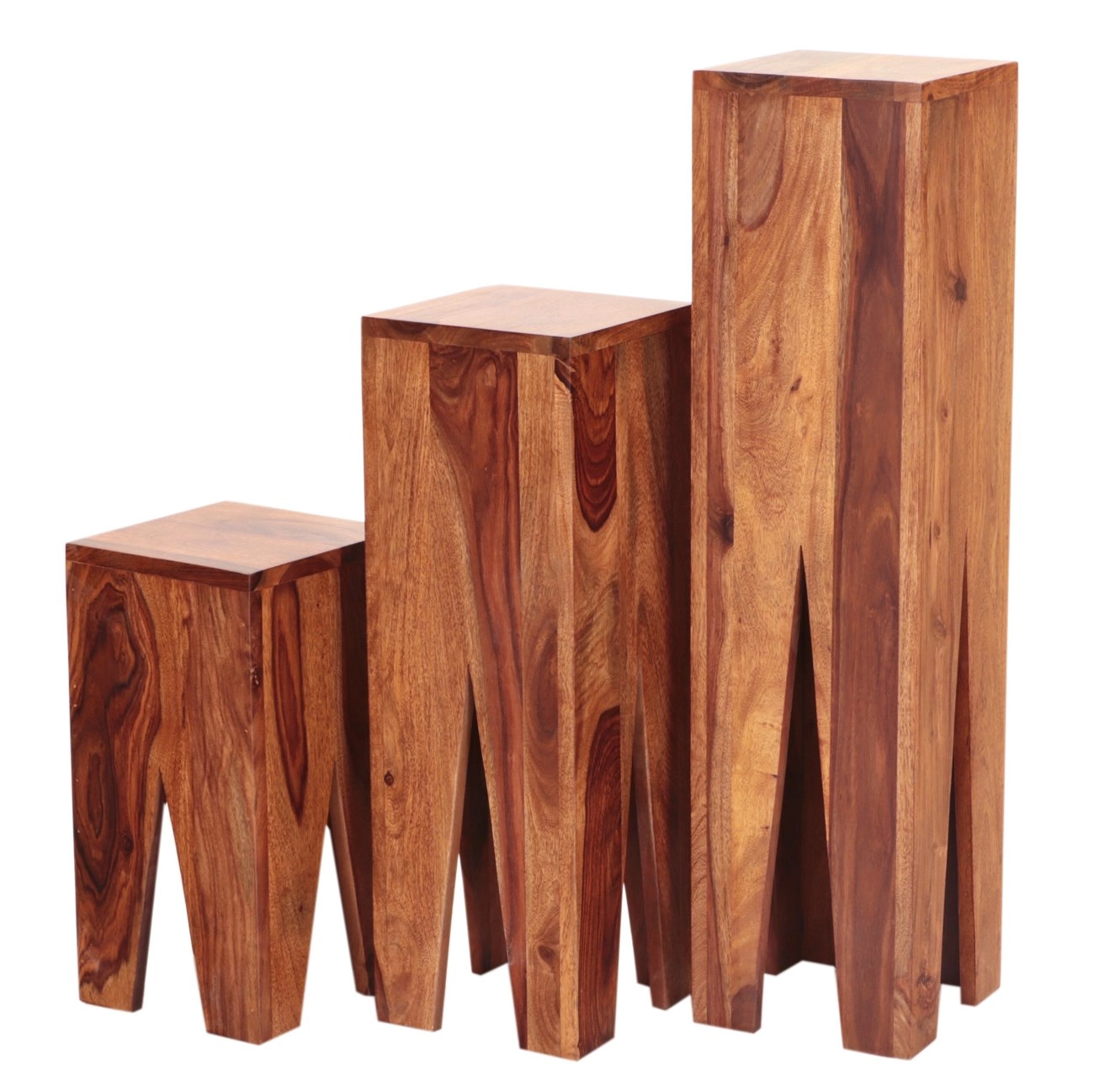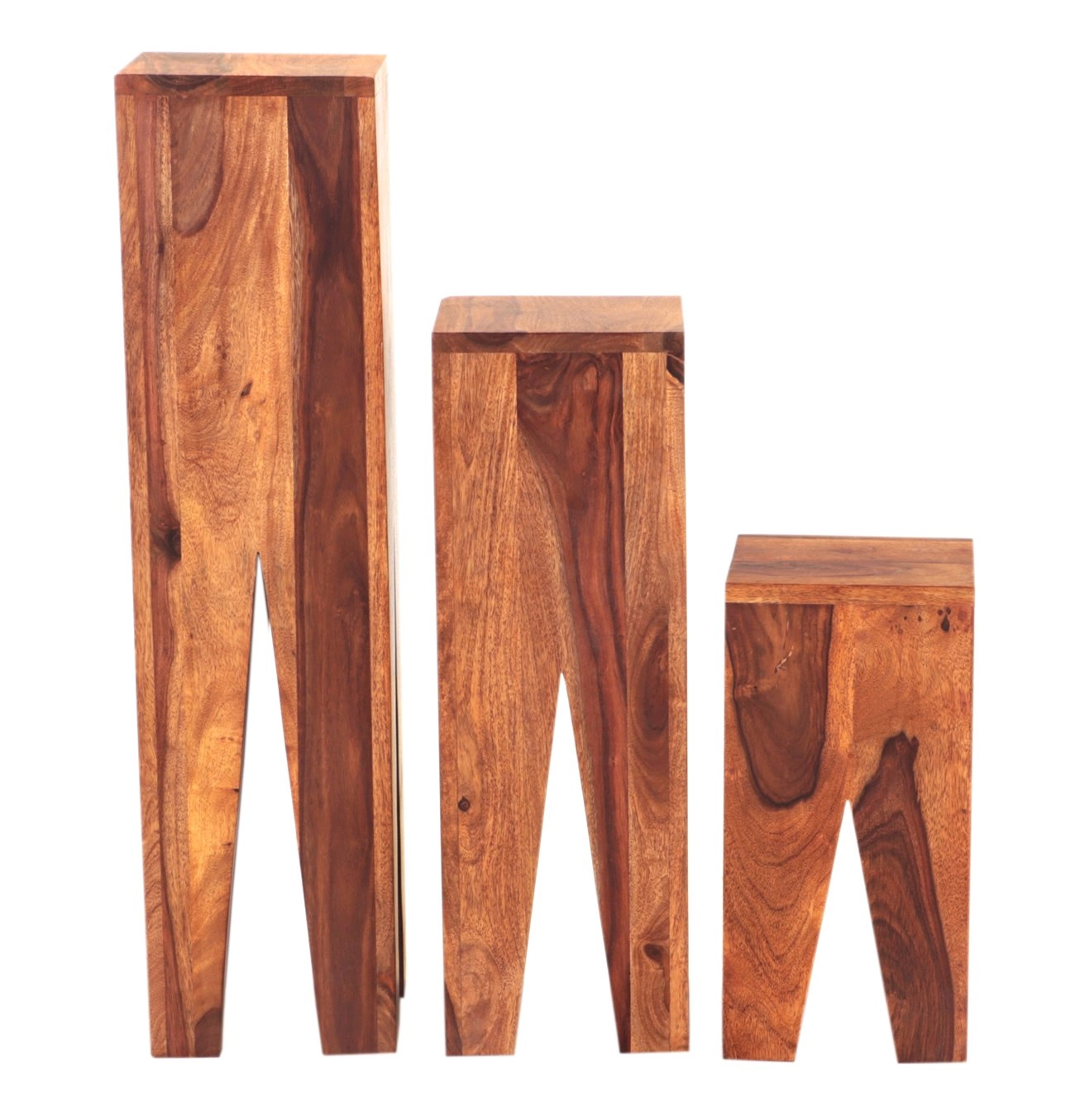 Odkládací stolky sada 3 ks. Výška 80, 60 a 40 cm. Vyrobeny z kvalitního masivního palisandrového dřeva. Odkládací stolky které máme skladem dá se prohlédnout osobně nebo objednat na zakázku v kterémkoliv z našich nabízených odstínů! Indický koloniální nábytek palisandr masiv.