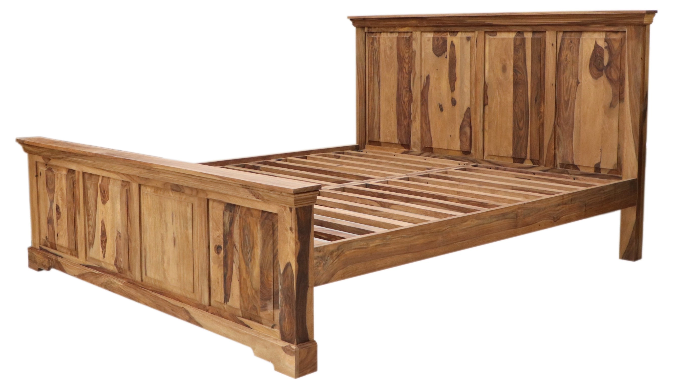 Indický palisandr, známý svou mimořádnou trvanlivostí a krásnou texturou, přináší do interiéru teplo a jedinečný charakter. Tato postel nejenže dodává prostoru eleganci, ale také harmonizuje s ostatním nábytkem. Ke kompletnímu vybavení ložnice lidé často volí další nábytek z masivu, jako jsou noční stolky, komody, šatní skříně a toaletní stolky, které dohromady vytváří útulný a stylový interiér.