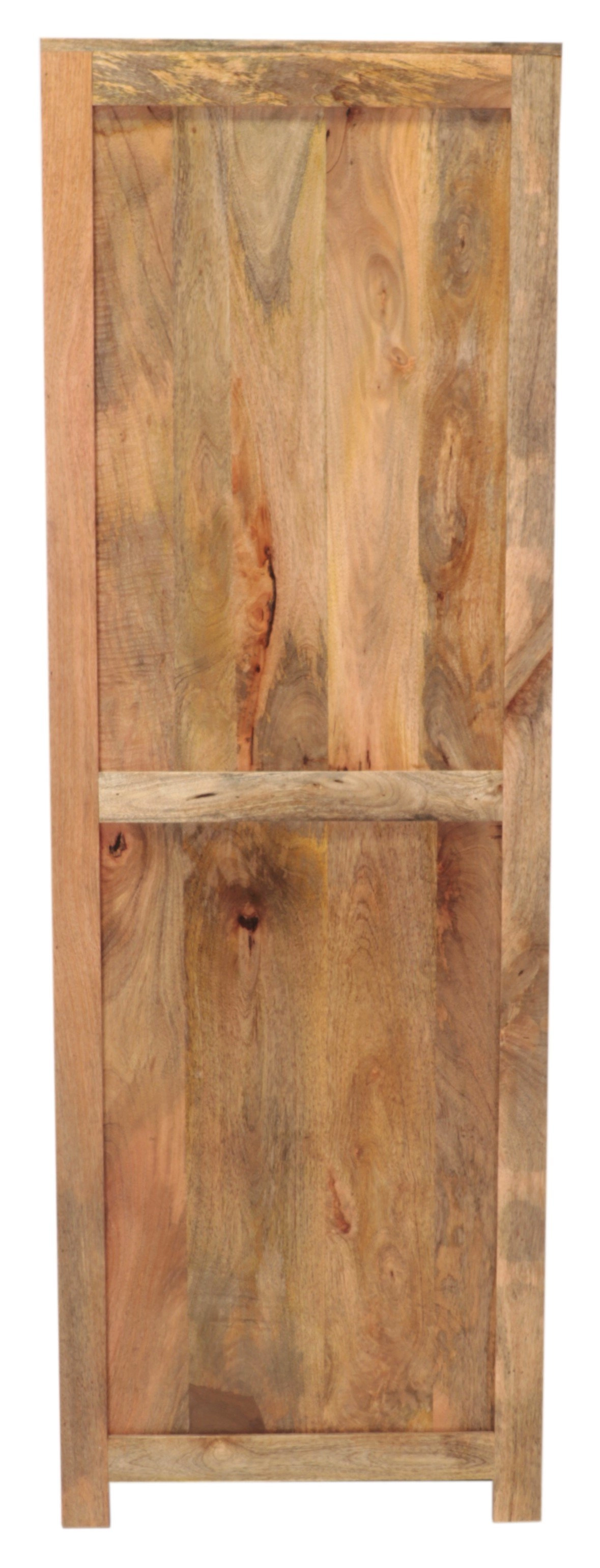 Knihovna masiv z dřeva mango je nejen estetickým prvkem vašeho interiéru, ale také velmi praktickým kusem nábytku. Je vybavena otevřenými policemi, které poskytují dostatek prostoru pro vystavení vaší sbírky knih nebo dekorativních předmětů. Integrované šuplíky pak nabízejí úložný prostor pro drobnosti, které chcete mít skryté, ale přesto po ruce.