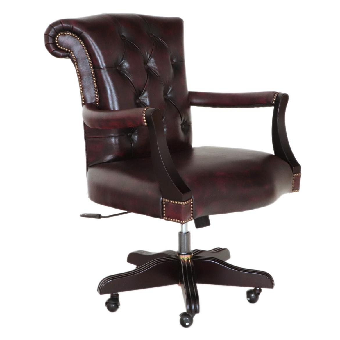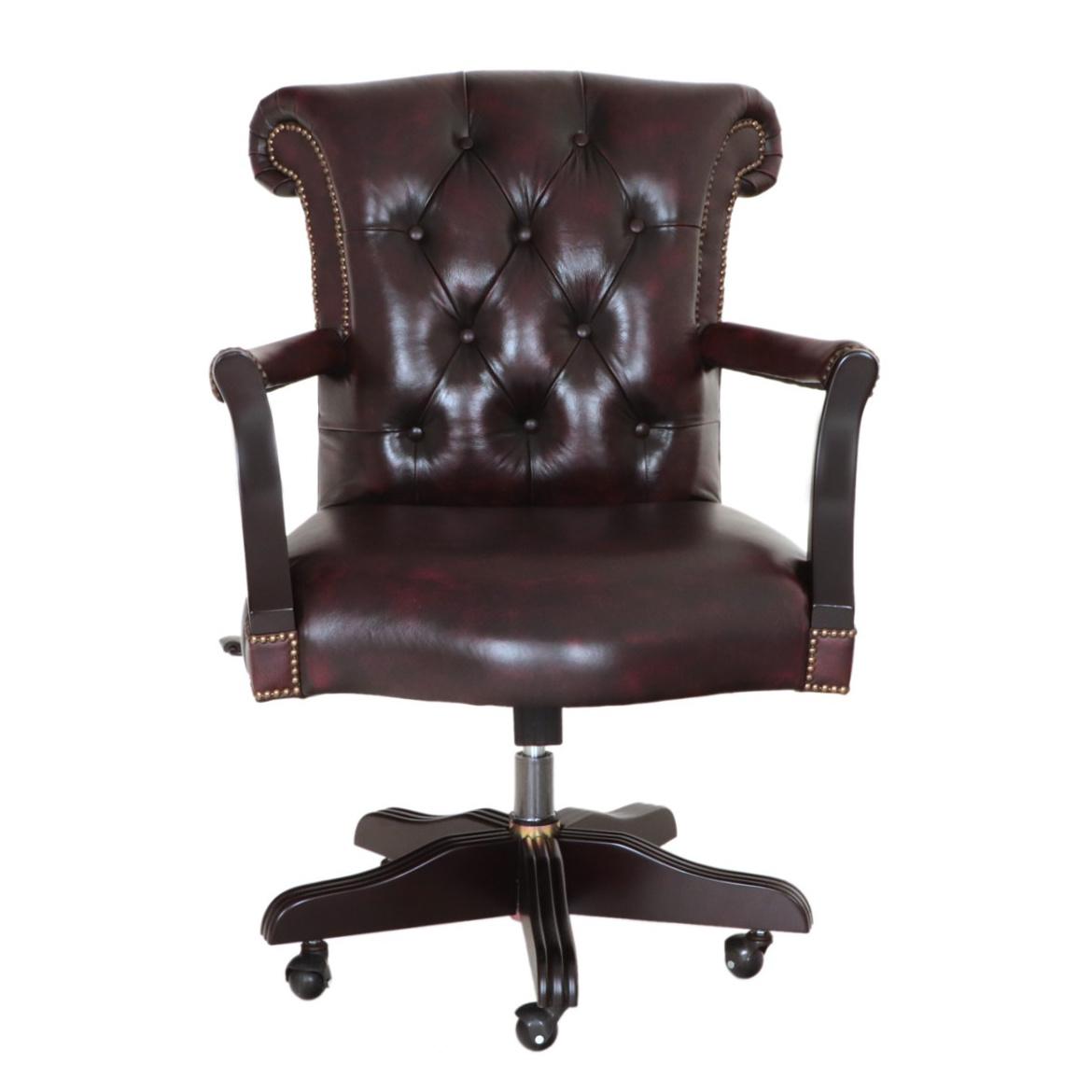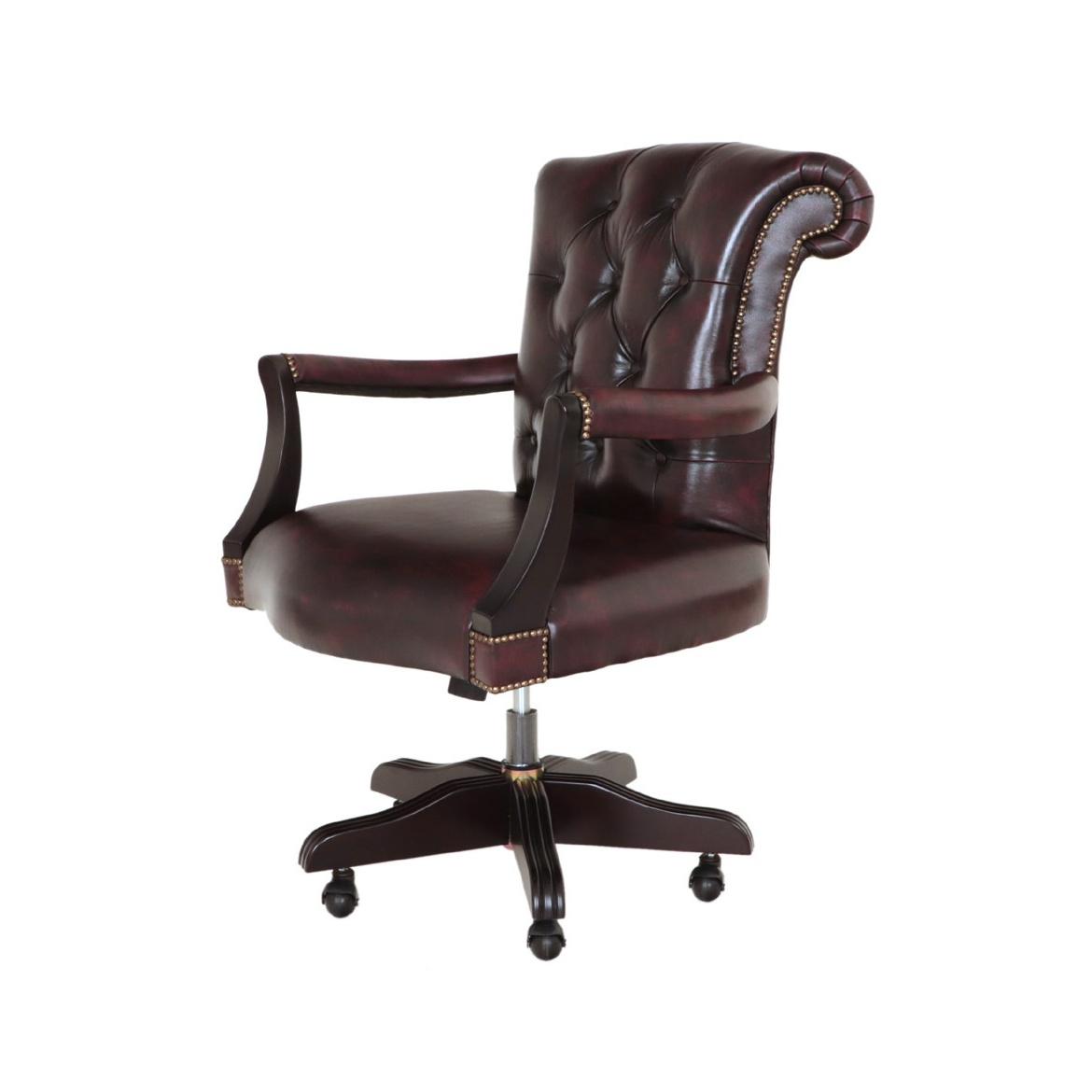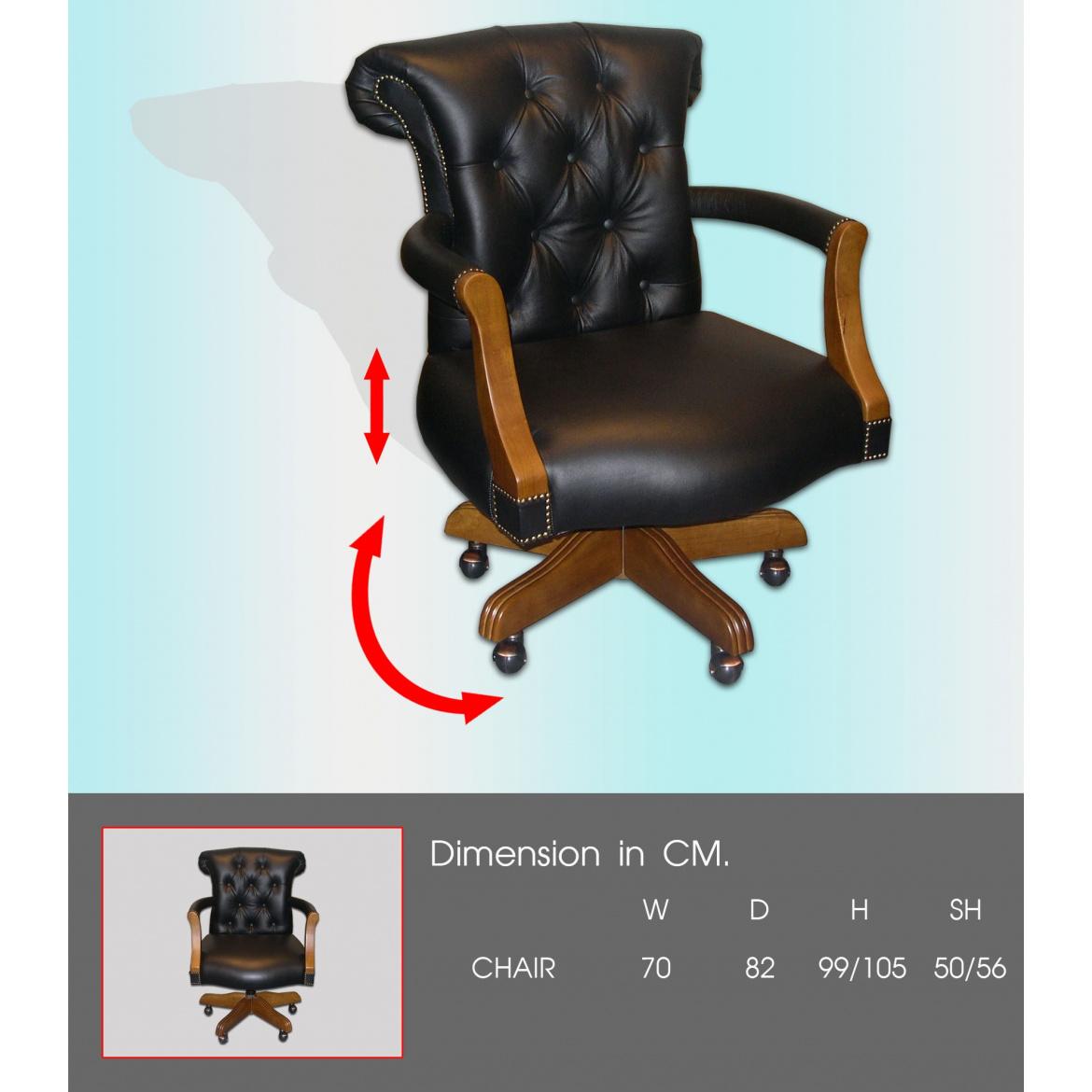 Kancelářská židle Chesterfield vyrobena z pravé hovězí kůže je velmi kvalitně řemeslně zpracovaná, což umožňuje uvolněné a pohodlné sezení.