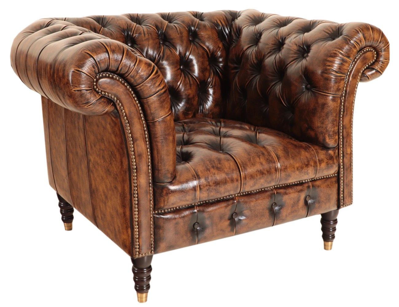 Vyrobeno z prvotřídní hovězí kůže, toto křeslo jednoduše zaujme kvalitou svého materiálu, který dodává nezaměnitelný pocit luxusu a přirozenou texturu. Křeslo Chesterfield Bath pochází z Indie, země proslulé svou tradicí vkusného řemeslnictví. Každé křeslo je výjimečné díky elegantním prošívaným detailům a zaobleným područkám, které dodávají kouzlo a rafinovanost do jakéhokoliv prostoru.