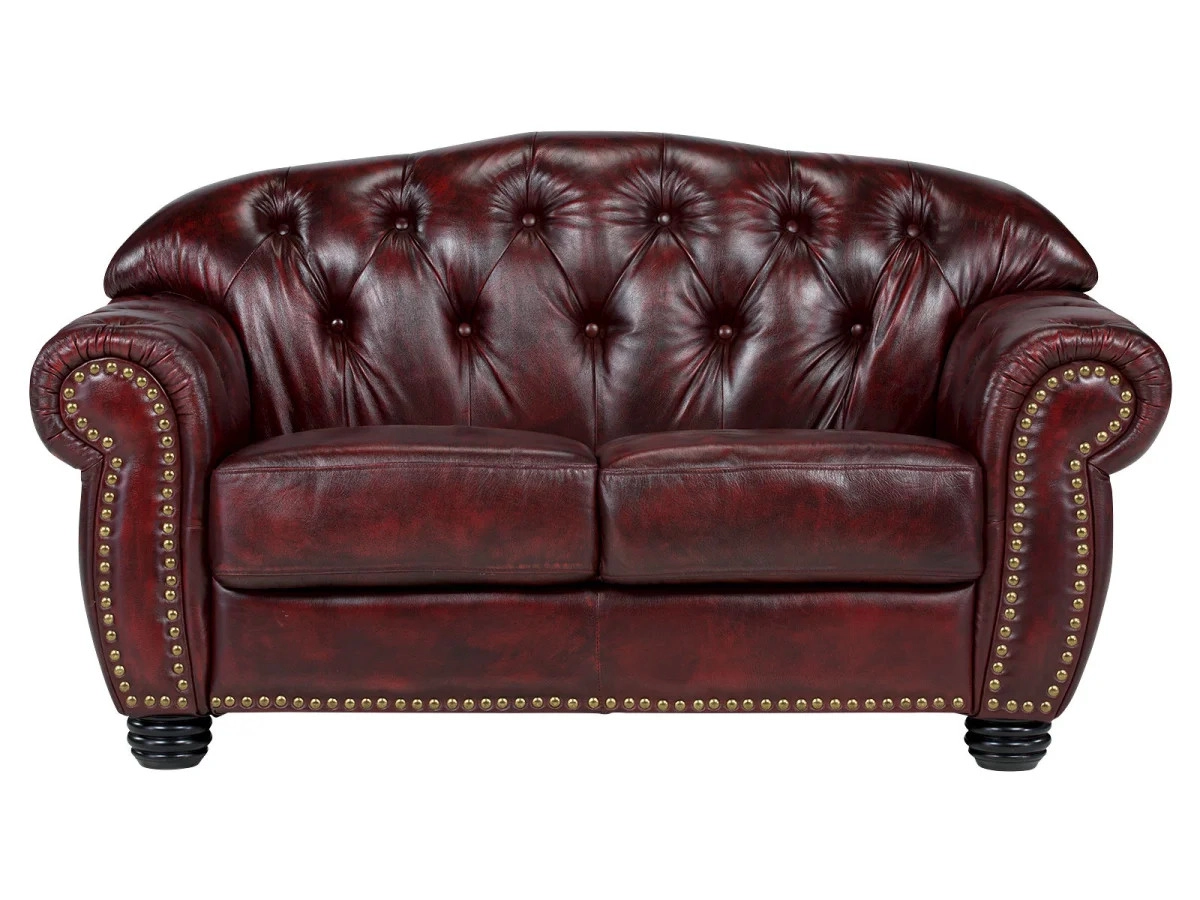 Objevte eleganci a pohodlí s dvoumístnou pohovkou Chesterfield Hereford, která je vyrobena z pravé červené kůže. Tento klasický kousek s rozměry 168 cm x 96 cm x 94 cm přináší do každého interiéru nádech luxusu a vysoce kvalitního designu.