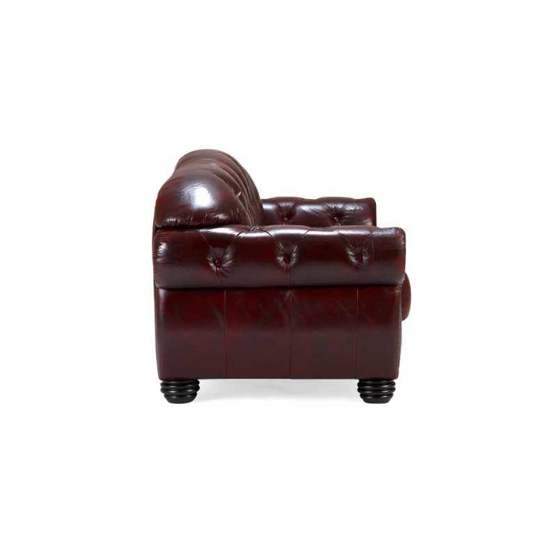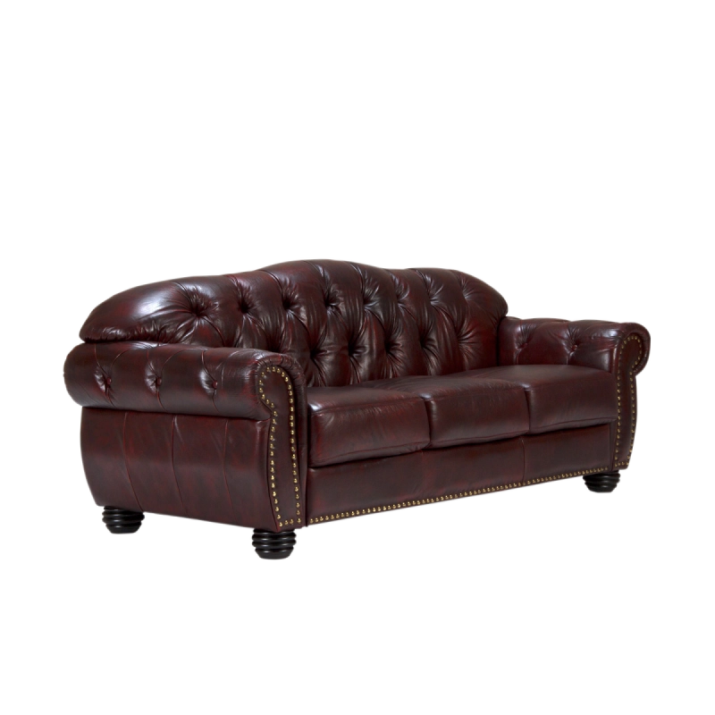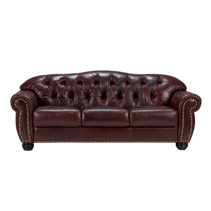 Pohovka Chesterfield Hereford v ikonickém designu poskytuje luxusní pohodlí a nadčasový styl. Tento třímístný model z pravé červené kůže je ideální volbou pro elegantní obývací pokoj, měří 224×96×94 cm a dodá vašemu interiéru šmrnc i komfort.