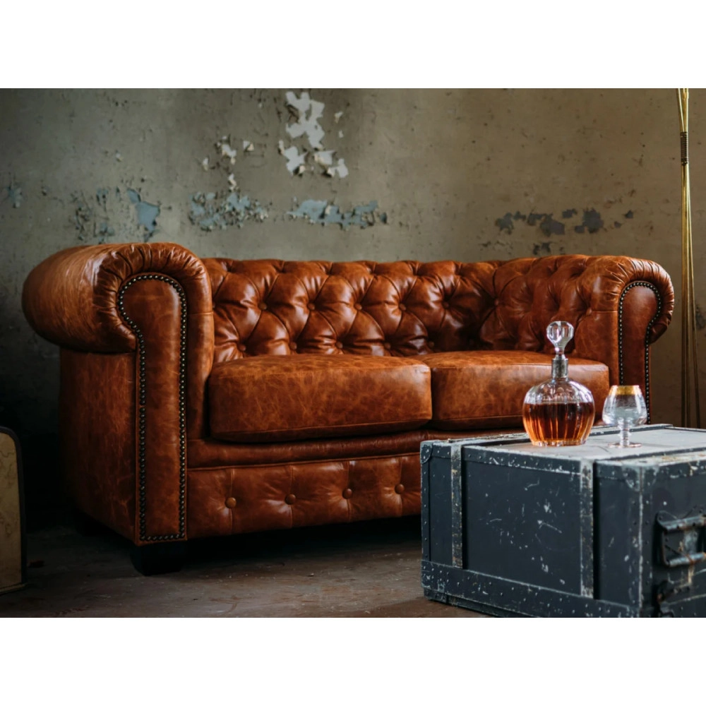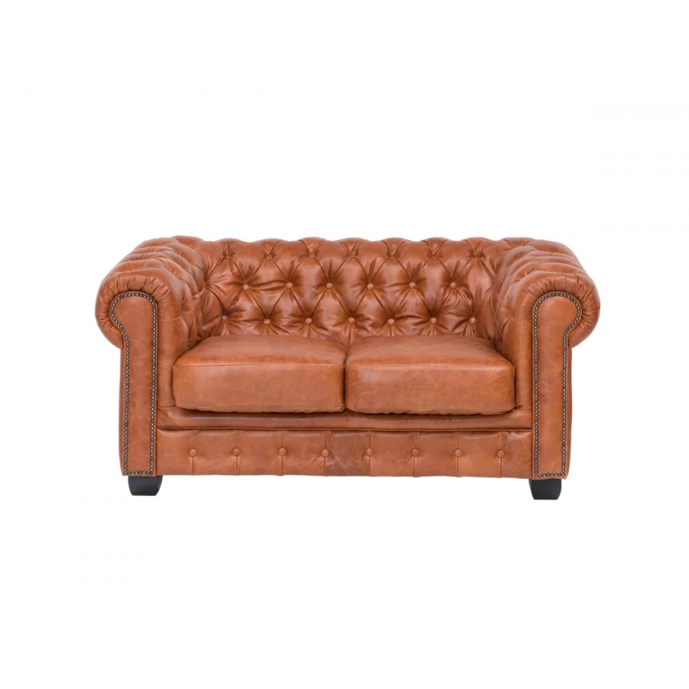 Chesterfield Zweisitzer aus echtem Leder vintage hellbraun