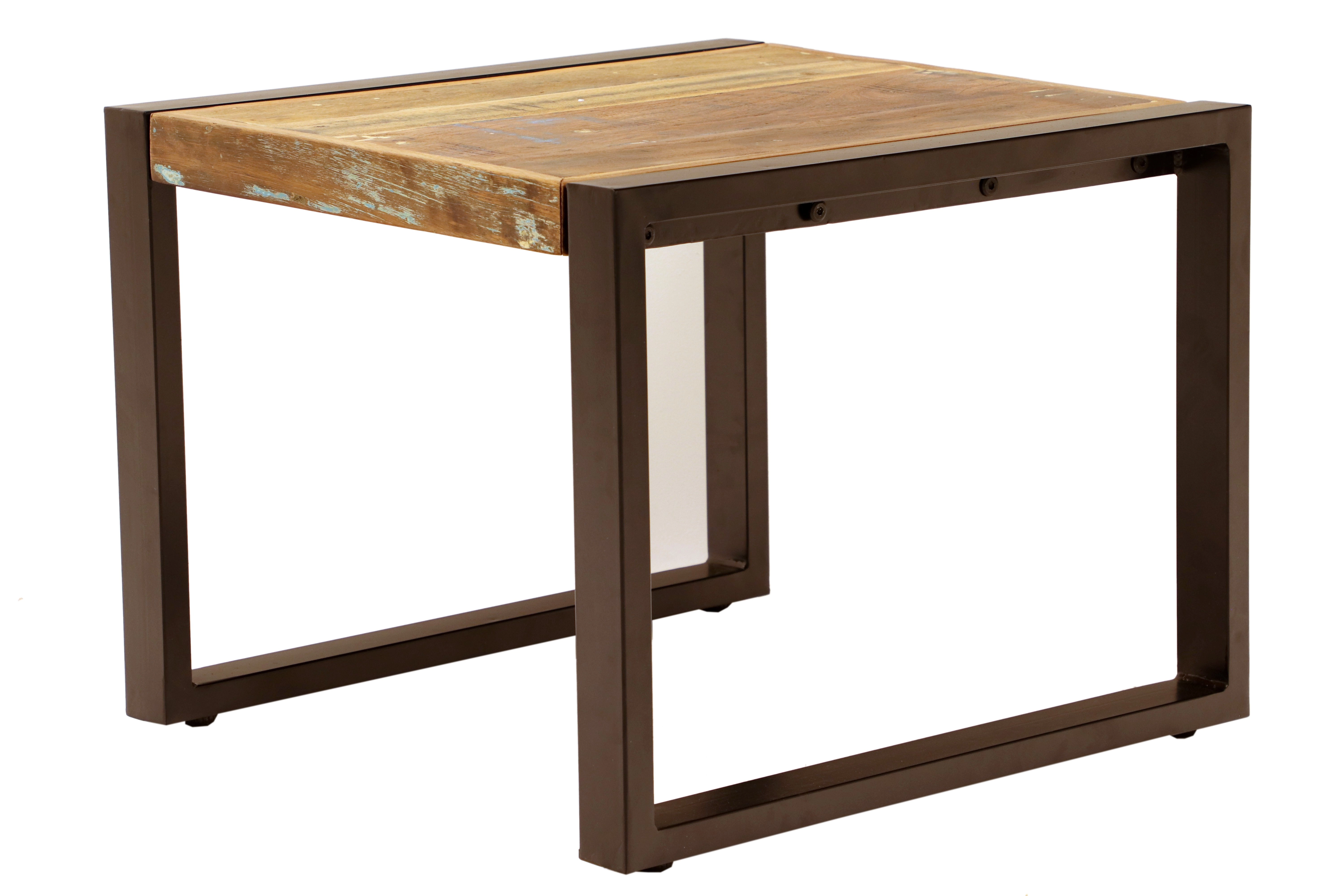 Jeho kompaktní rozměry 60x45x60 cm z něj činí ideální volbu pro menší prostory, kde každý centimetr hraje roli. Robustní konstrukce zajišťuje dlouhou životnost a díky jedinečné struktuře mangového dřeva se každý stolek stává originálním uměleckým dílem. Mangové dřevo je známé svou pevností a odolností, což zaručuje, že stolek bude sloužit po dlouhá léta. Elegantní kovové prvky na tomto stolku dodávají moderní akcent a zajišťují stabilitu.