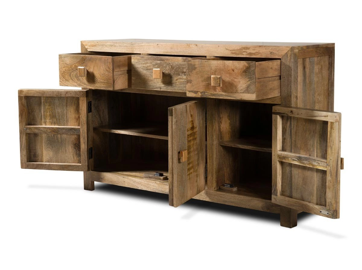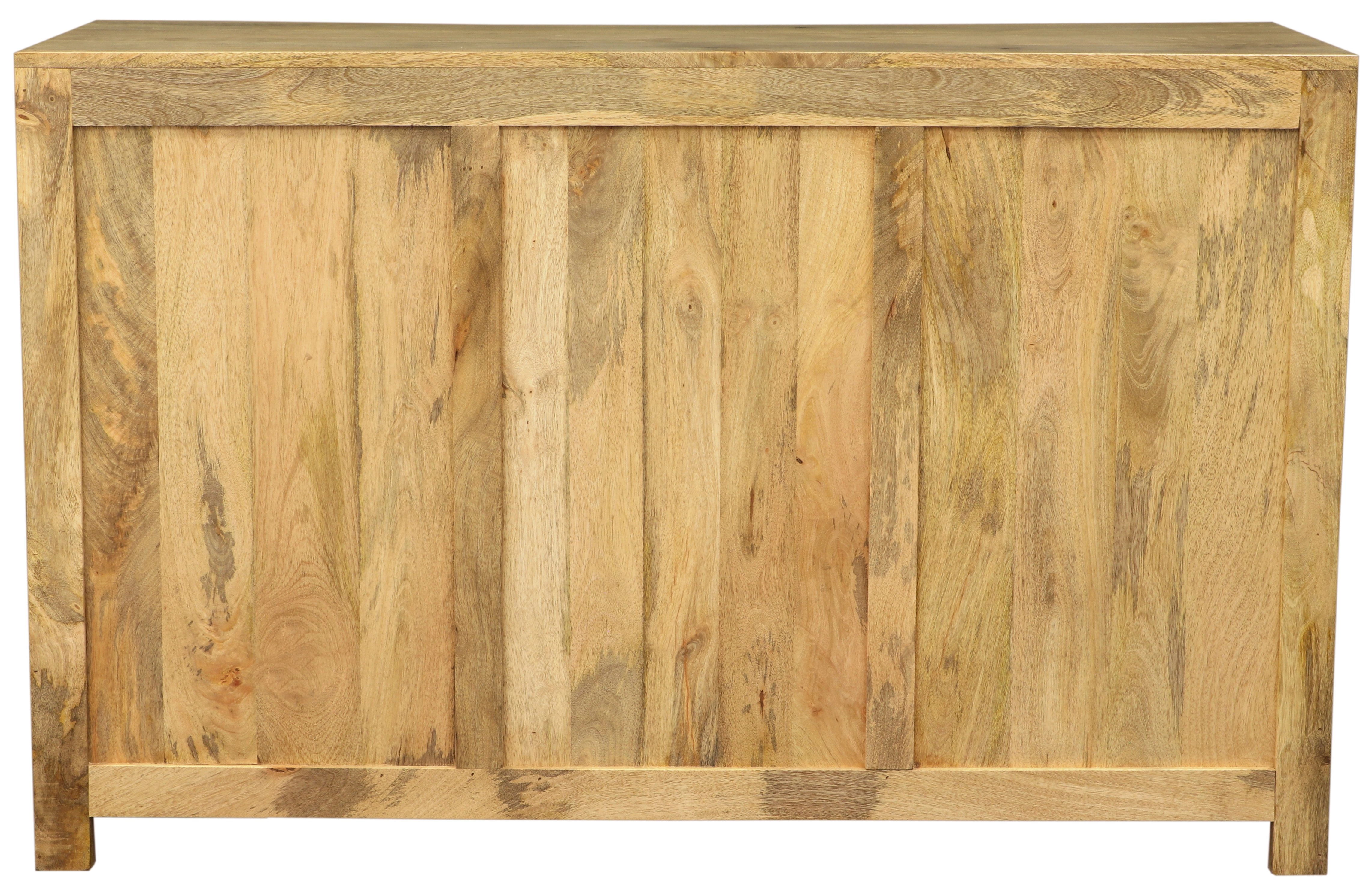 Komoda designová z mangového dřeva 140x90x45 je špičkový kousek nábytku , který přináší exotický půvab a praktickou funkčnost do vaší předsíně. Vyrobena s pečlivostí v Indii, tato komoda z masivního manga spojuje tradiční řemeslné umění s moderním designem. Její šířka 140 cm, hloubka 45 cm a výška 90 cm poskytují dostatek úložného prostoru pro vaše potřeby. Troje dvířka a tři šuplíky nabízejí elegantní řešení pro uskladnění různých předmětů, zatímco přírodní kresba mangového dřeva přináší do prostoru teplou a útulnou atmosféru. Tato komoda je ideální volbou pro ty, kteří hledají luxusní komody s osobitým stylem, které vyniknou nejen svou kvalitou, ale i vizuálním dojmem.