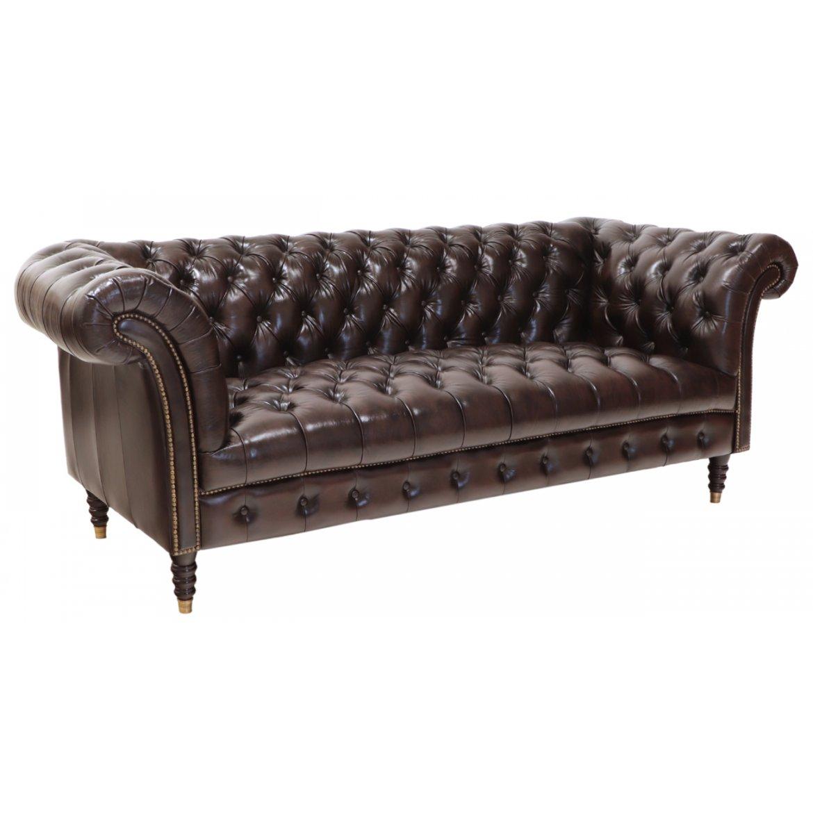 Dreisitzige Chesterfield-Sofa aus echtem Rindsleder, modernes und qualitativ hochwertiges Mobiliar.