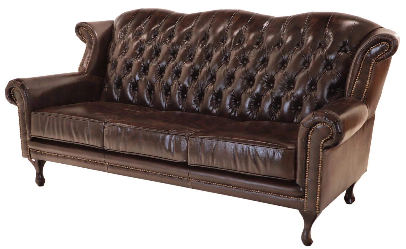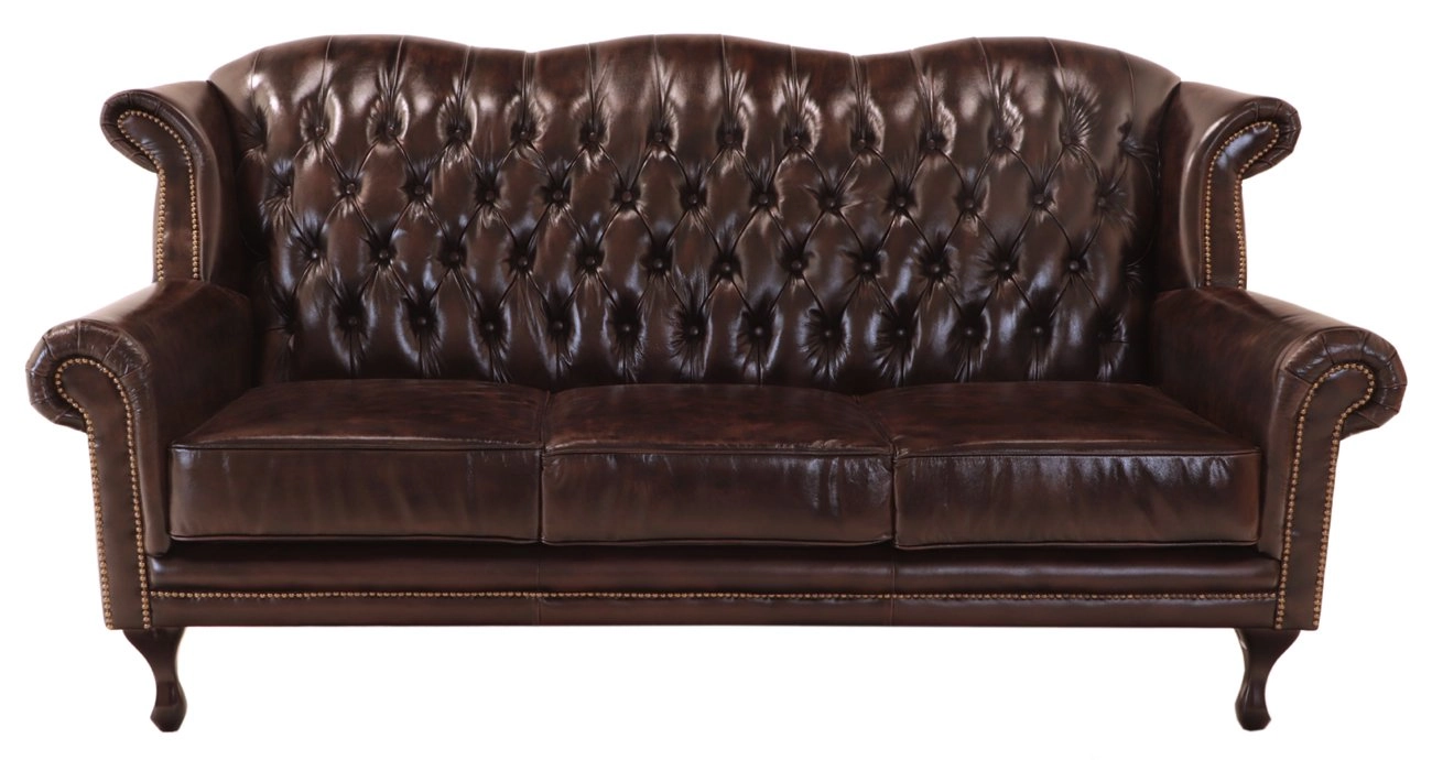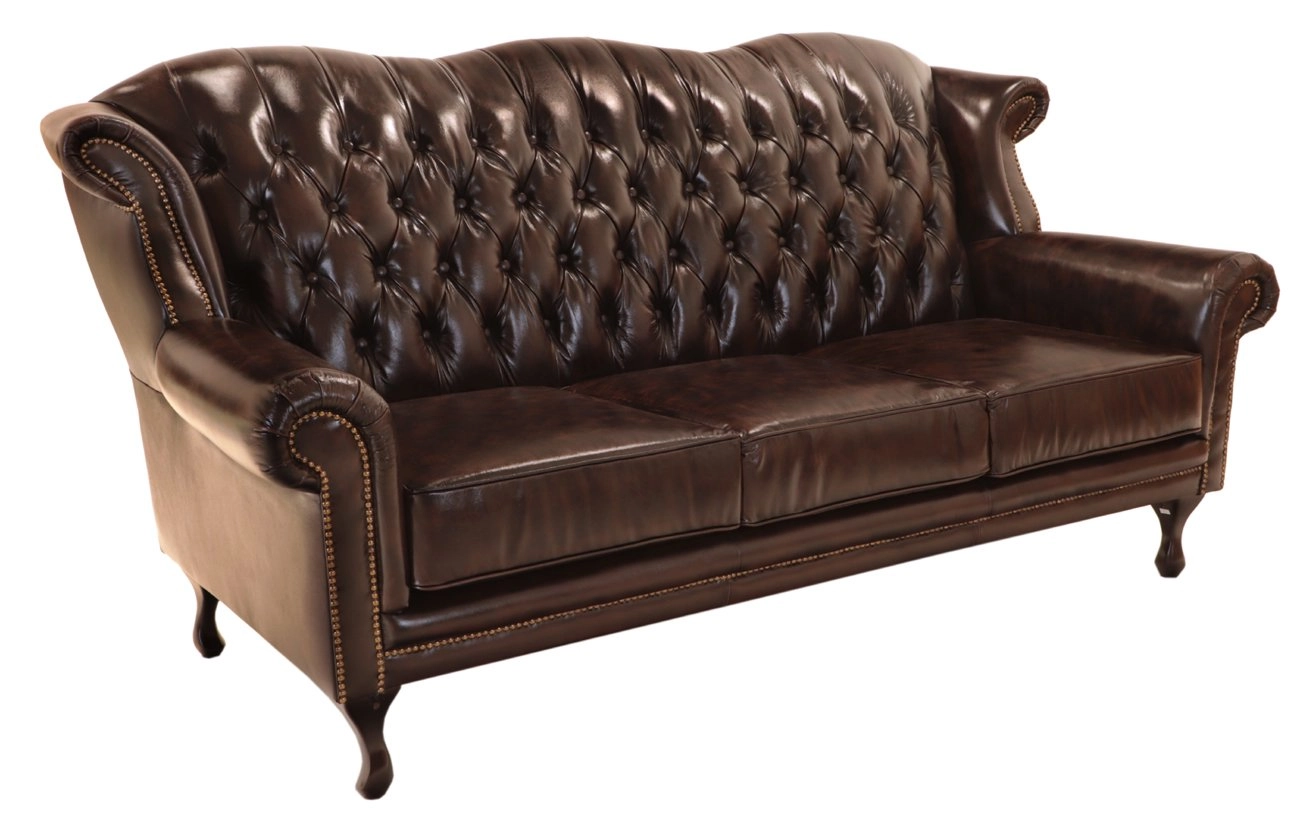 Chesterfield pohovka trojmístní vyrobena z pravé hovězí kůže s prošívanými a elegantně zaoblenými područkami vnese do každého interiéru nádech luxusu a stylu. Pohovky Chesterfield, které máme skladem, si můžete prohlédnout v našem showroomu.