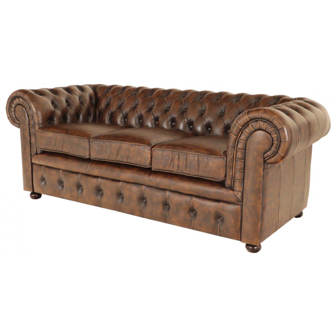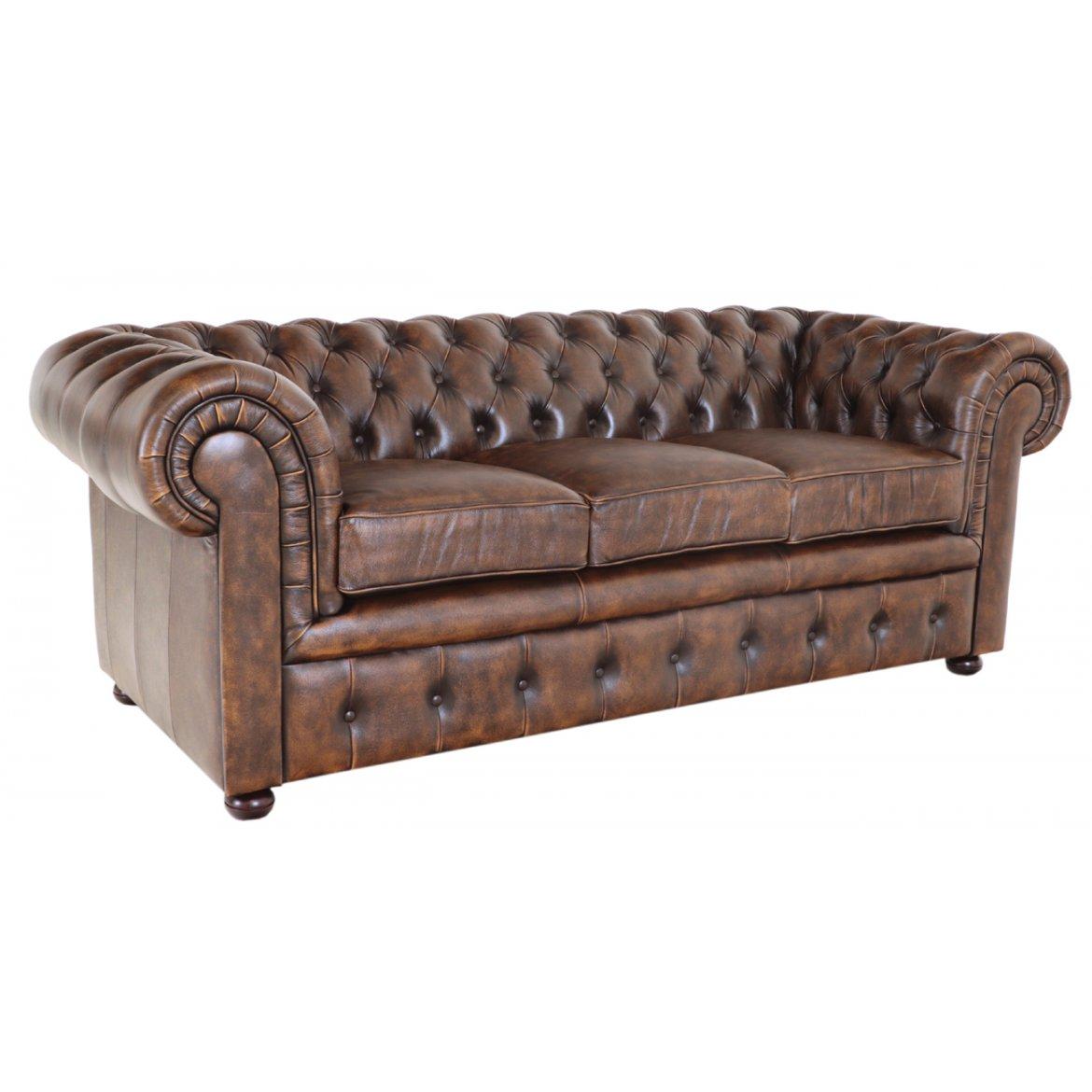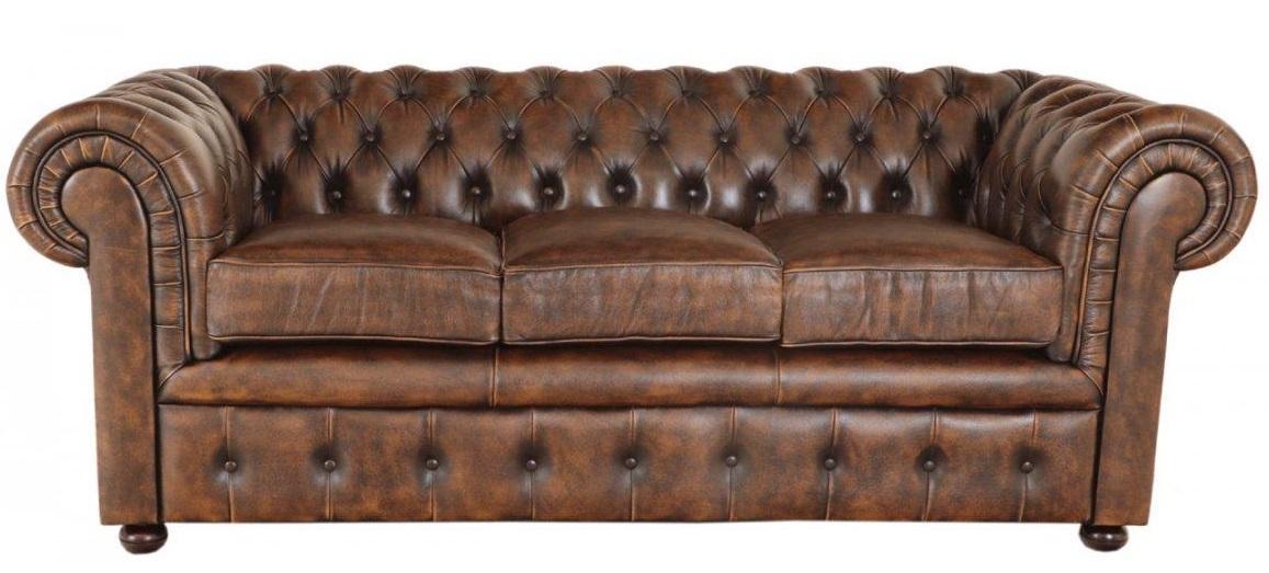 Chesterfield pohovka trojmístní vyrobena z pravé hovězí kůže s prošívanými a elegantně zaoblenými područkami vnese do každého interiéru nádech luxusu a stylu. Pohovky Chesterfield, které máme skladem, si můžete prohlédnout v našem showroomu.