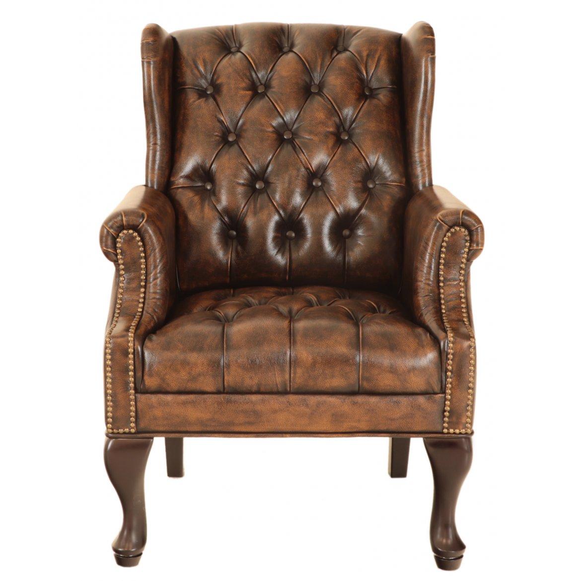 Der Sessel aus echtem Rindsleder ist sehr hochwertig verarbeitet, was ein entspanntes und komfortables Sitzen ermöglicht. Die Chesterfield-Sessel, die wir auf Lager haben, können Sie in unserem Showroom besichtigen.