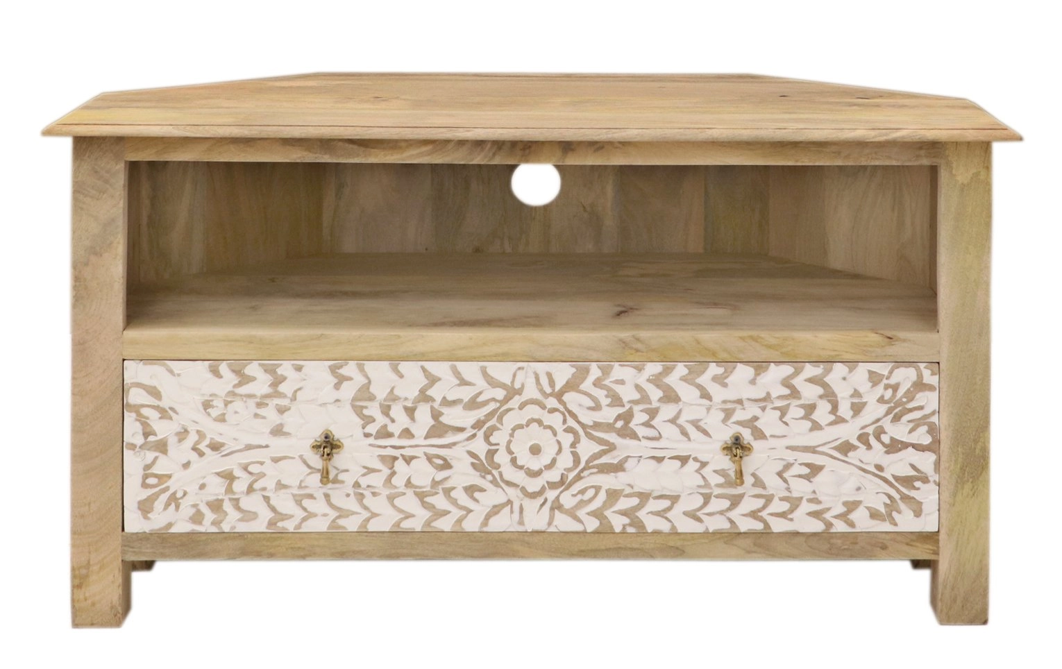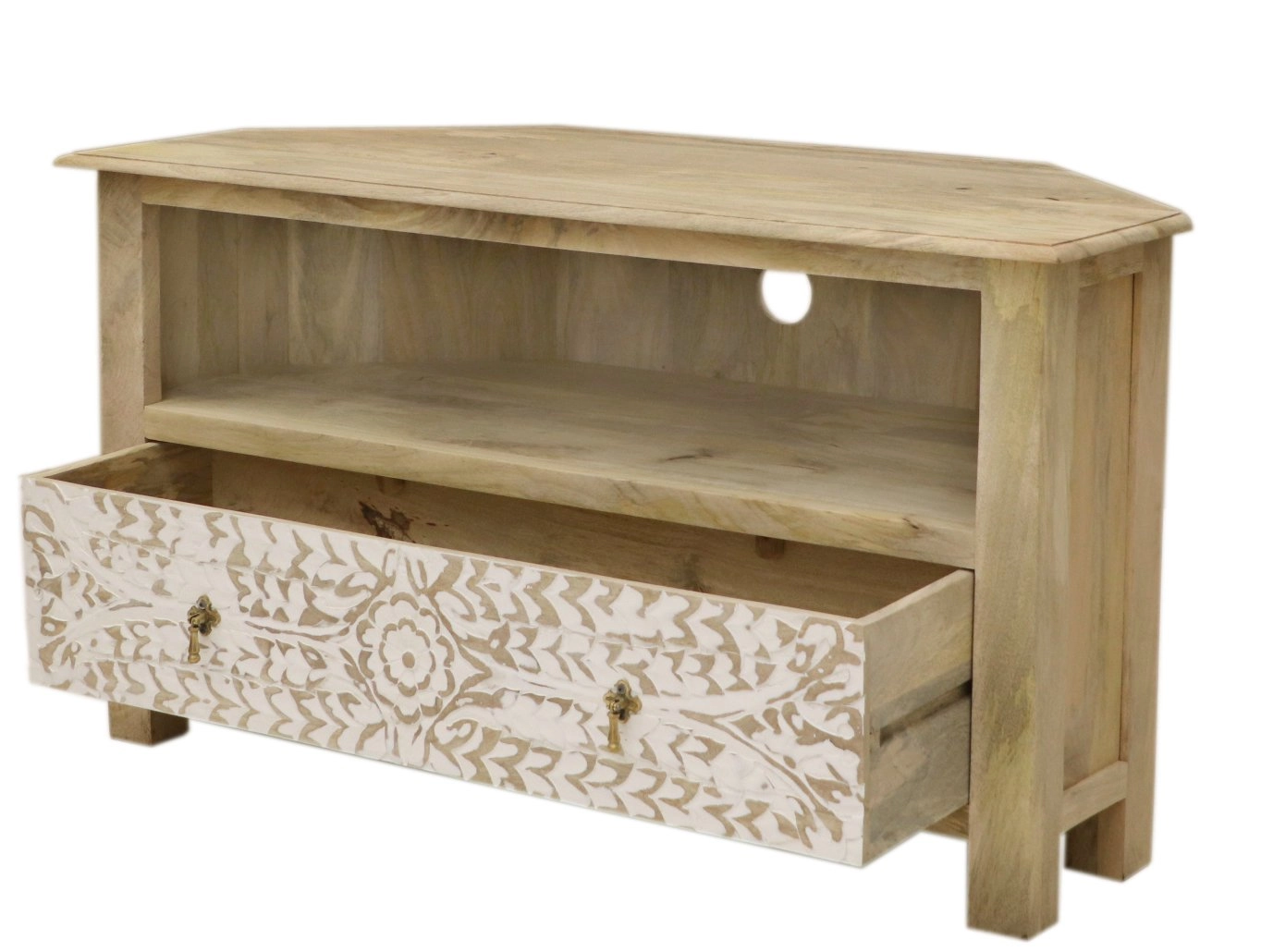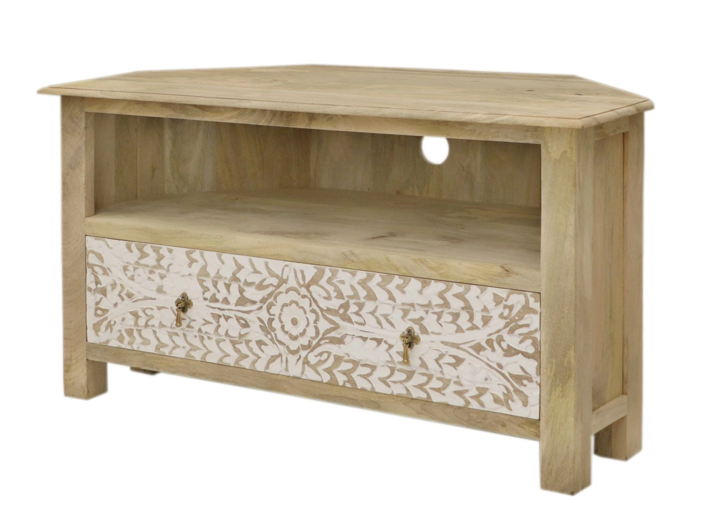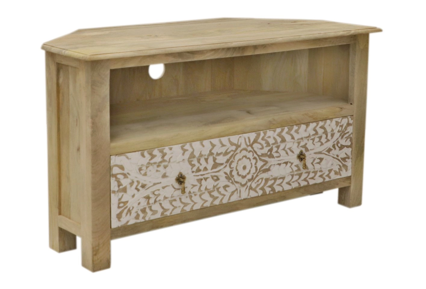 Rohový stolek pod TV z masivního dřeva mango o rozměrech 110x60x50 cm je ideálním doplňkem pro váš obývací pokoj. Tento jedinečný kus nábytku z kategorie masivní indický nábytek kombinuje eleganci s praktičností, což ho činí nezbytností pro ty, kteří si cení kvalitního zpracování a stylového designu.