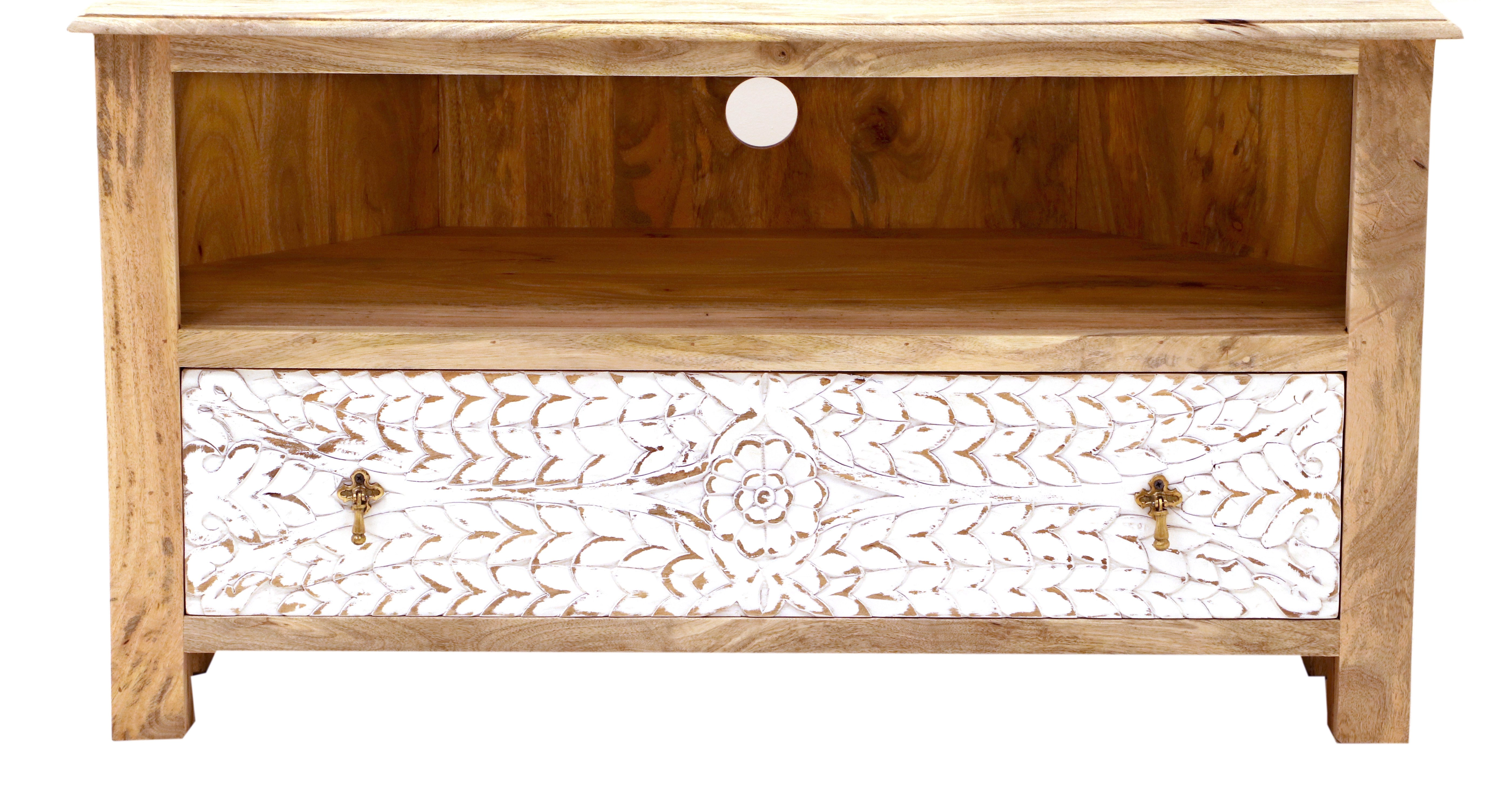Tento TV stolek z masivu, původem z Indie, přináší do vašeho domova kousek exotiky a vytvoří útulnou atmosféru. Masivní mango dřevo, z něhož je vyroben, je dobře známo svou pevností a trvanlivostí, což zajišťuje, že váš stolek bude sloužit po mnoho let.