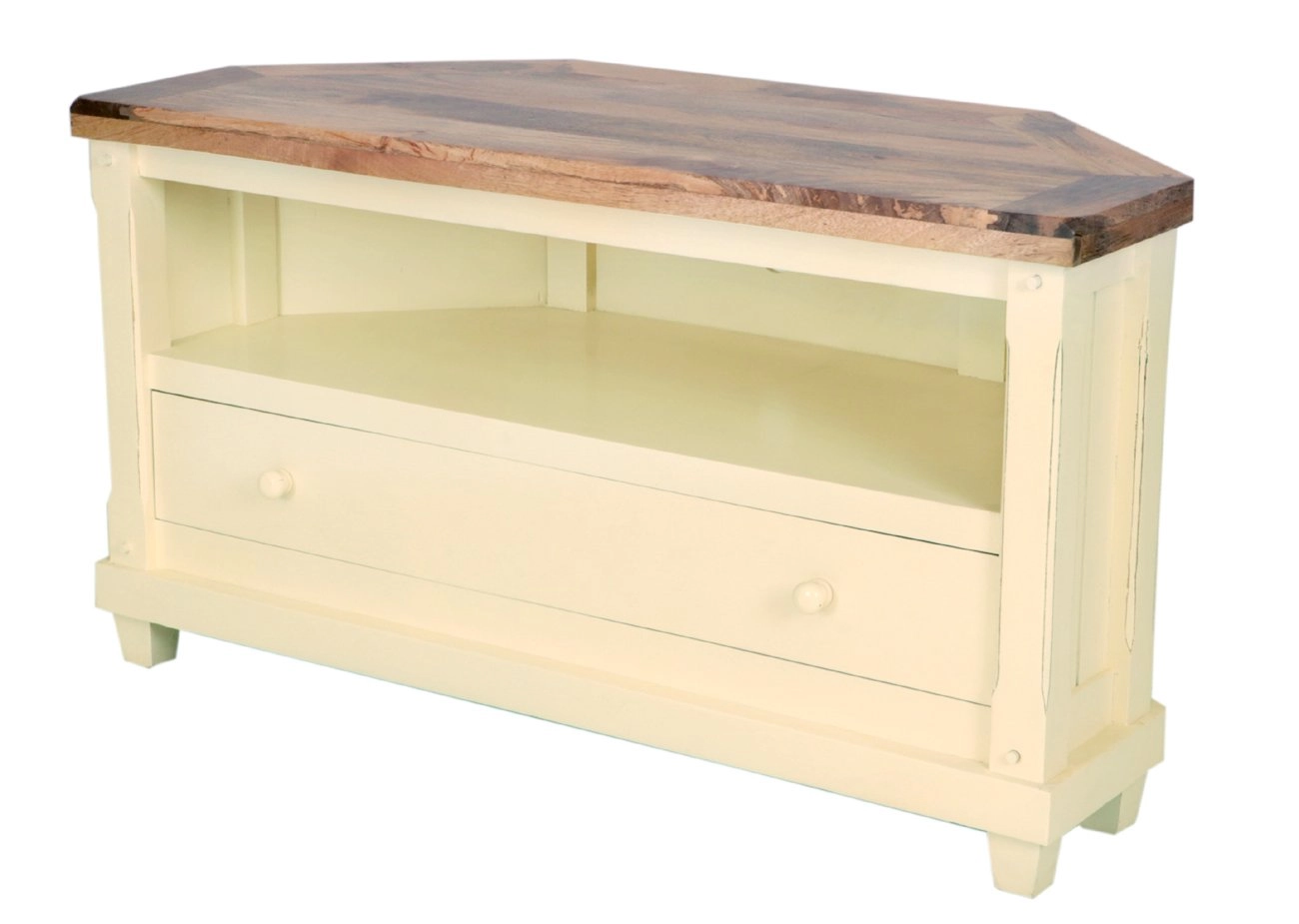 Představujeme vám elegantní rohový TV stolek z masivu mango, který přinese do vašeho obývacího pokoje harmonii přírodních prvků a moderního stylu. Tento stolek, navržený speciálně pro uspořádání rohů místnosti, je ideální volbou pro ty, kteří hledají funkčnost a estetičnost v jednom. S rozměry 110x60x50 cm je dostatečně prostorný, aby uspokojil vaše potřeby na uložení nejen audiovizuální techniky, ale i dalších dekorativních prvků. Jeho robustní konstrukce z masivního mango dřeva zajišťuje dlouhou životnost a odolnost, které oceníte v každodenním používání. Nádherný odstín masivního mangového dřeva v kombinaci s jemně bílými prvky dokonale doplňuje jakýkoliv interiér, zvláště pak ty inspirované přírodou či moderním designem. Původem z Indie, tento stolek nese obraz kultury a preciznosti zpracování, což dodává vašemu prostoru jedinečný charakter.