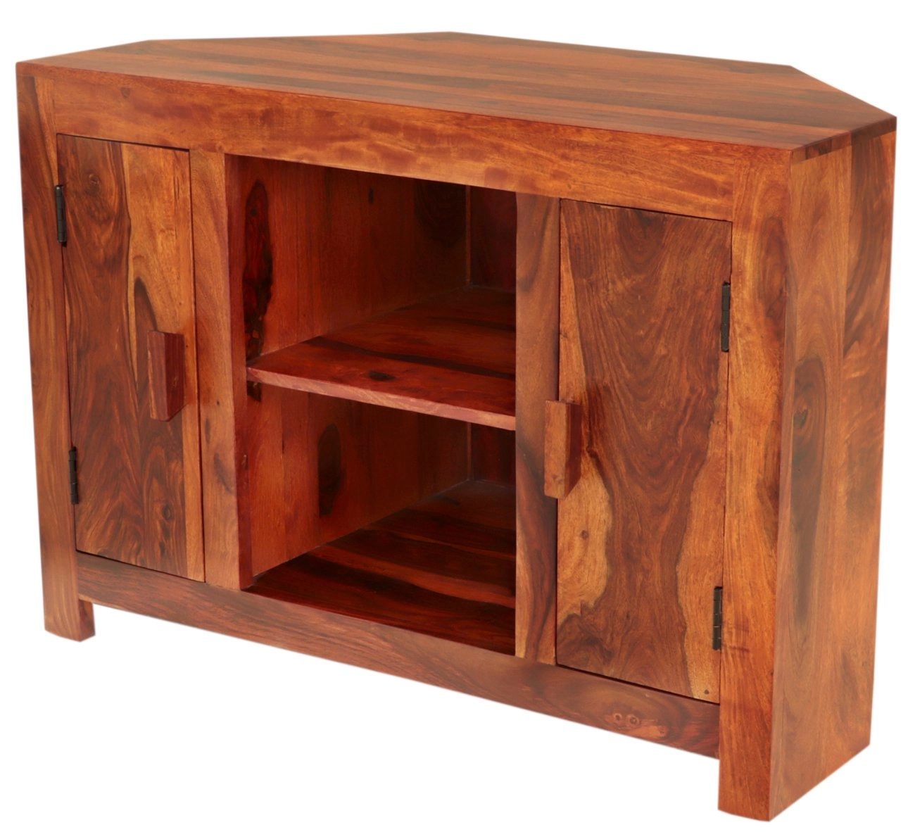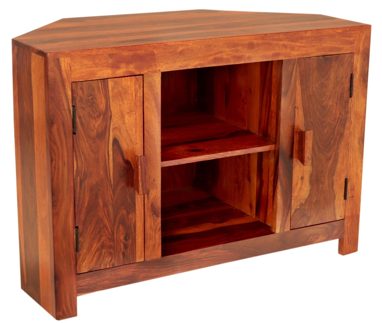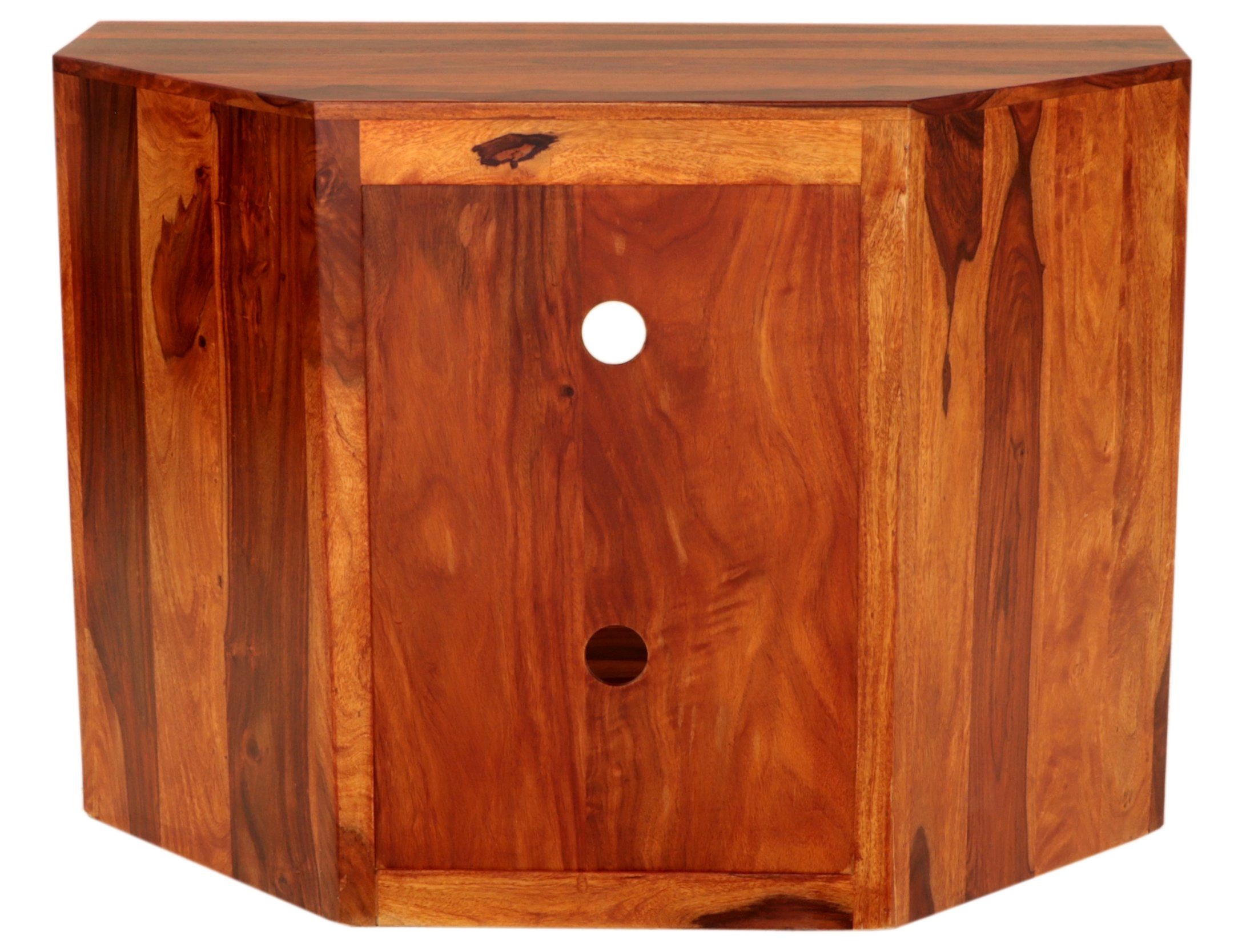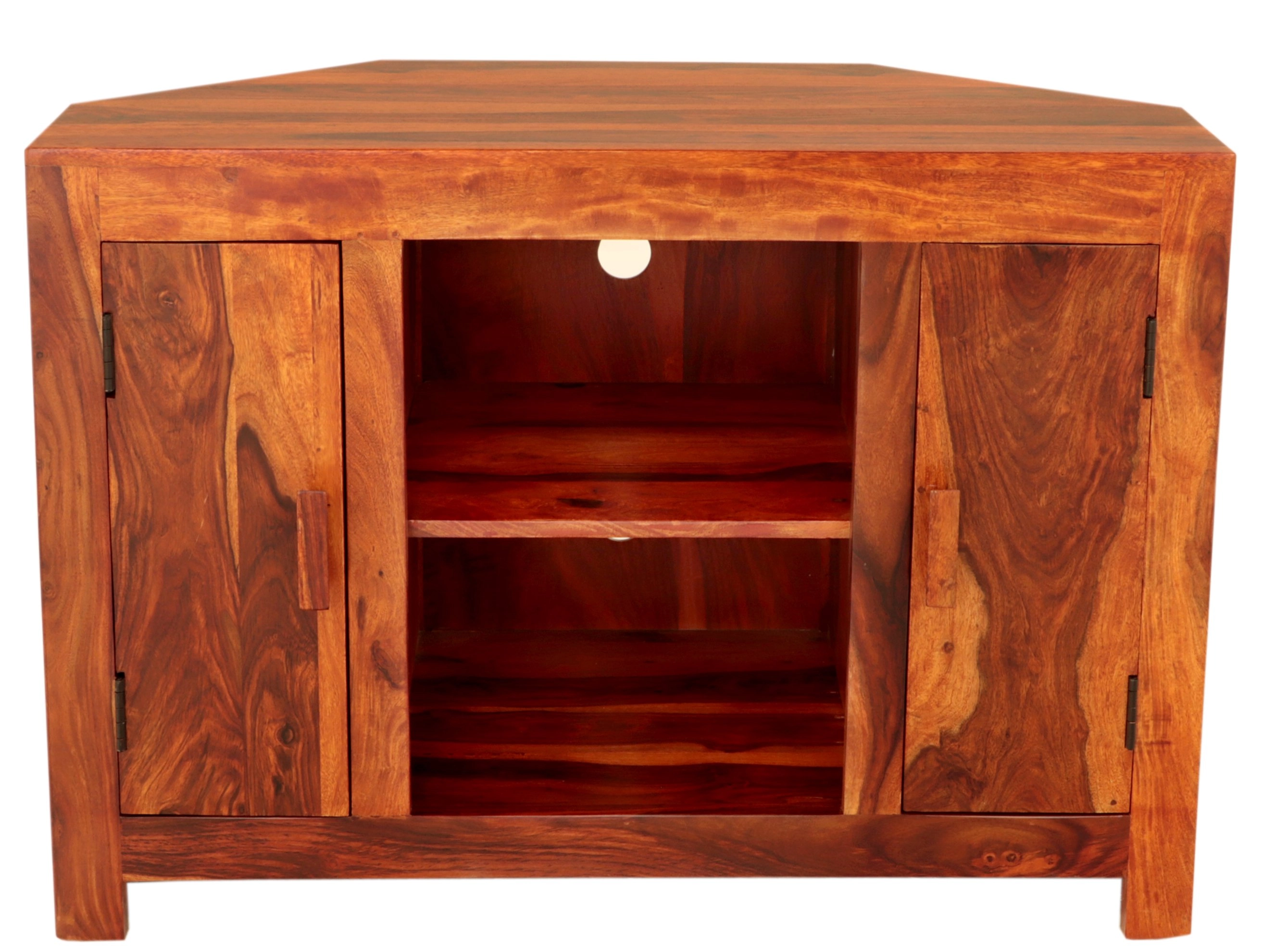 Rohové TV stolky z masivu jsou ideální volbou pro ty, kteří si cení přirozené krásy dřeva v kombinaci s praktickým designem. Tento stolek je vyroben z prvotřídního palisandru, který je známý svou mimořádnou pevností a výraznou kresbou dřeva, což dodává každému kusu unikátní vzhled.