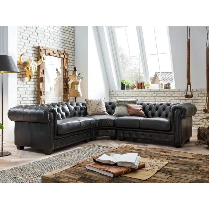 Rohová sedací souprava Chesterfield z pravé kůže je dokonalým spojením elegance a pohodlí, které váš interiér promění v oázu stylu. Její hnědá barva dodává prostoru teplý a útulný nádech, zatímco ikonický design Chesterfield s charakteristickým prošíváním a zakulacenými tvary přináší nádech klasiky. S rozměry 236 × 236 × 74 cm se tato sedací souprava stane centrálním prvkem vašeho obývacího pokoje, který zve k odpočinku a sdílení nezapomenutelných chvil s rodinou a přáteli. Vytvořte si prostor, kde se snoubí tradice s moderním životním stylem.