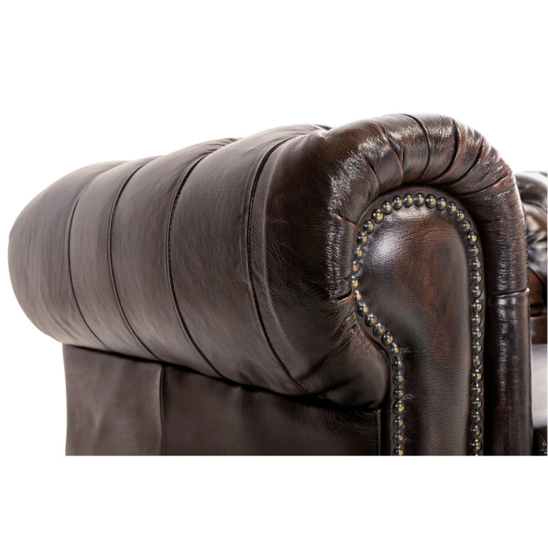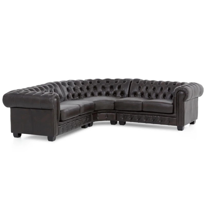 Objevte luxus a pohodlí s rohovou sedací soupravou Chesterfield, vyrobenou z prvotřídní pravé kůže v elegantní hnědé barvě. Tento klasický kousek s rozměry 236×236×74 cm dodá vašemu obývacímu pokoji šmrnc a tradiční styl, ideální pro relaxaci i společenské večery.