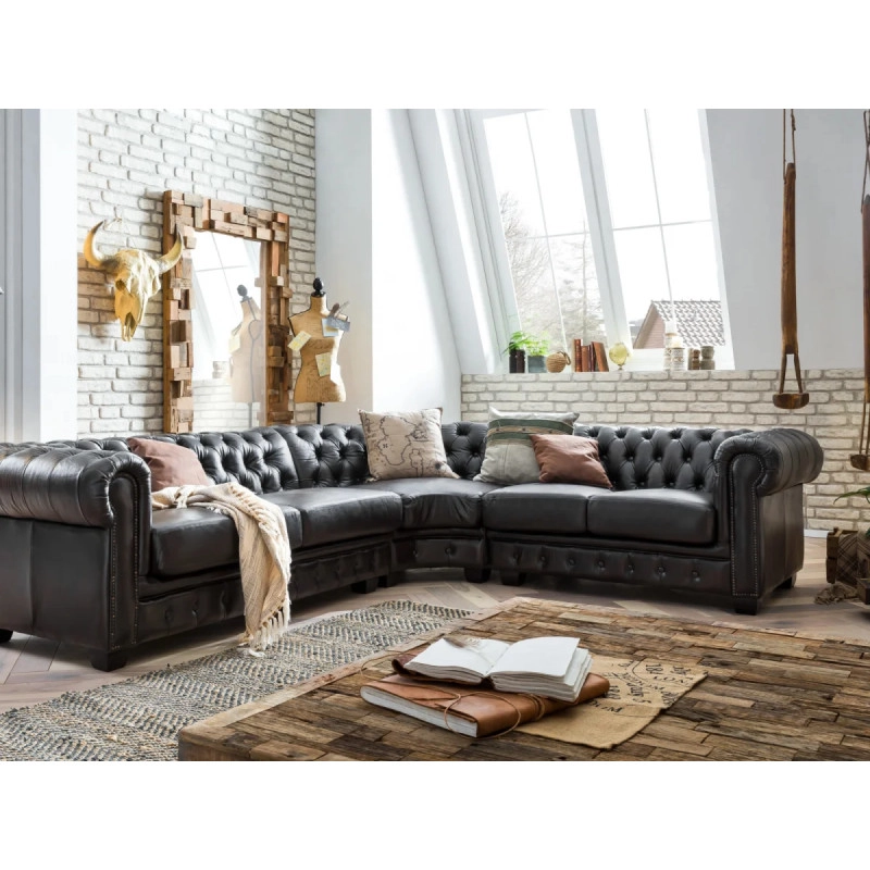 Kvalita zpracování této rohove sedací soupravy je zaručena použitím pravé kůže, která nejenže působí elegantně, ale také je vysoce odolná a snadno se udržuje. Tento materiál vám zajistí dlouhou životnost a pohodlí, které oceníte při každém sezení. Hnědý povrch příjemně ladí s jakýmikoli doplňky, ať už se rozhodnete pro minimalistický či bohatě zdobený interiér. Vytvořte si prostor, který bude odrážet váš osobní styl a umožní vám se cítit jako doma. Investujte do kvality a elegance, které vám rohova sedací souprava Chesterfield nabízí, a přitáhněte pozornost každého, kdo váš interiér navštíví. Prozkoumejte možnosti, jak oživit svůj obývací pokoj s tímto jedinečným kouskem!