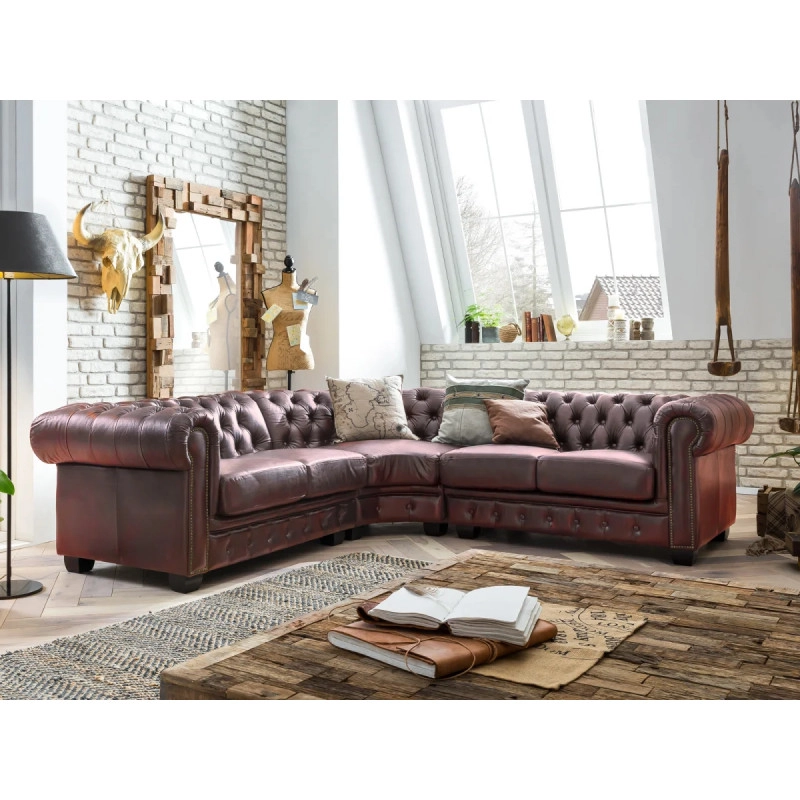 Objevte luxusní rohovou sedací soupravu Chesterfield, vyrobenou z pravé červené kůže, která dodá vašemu obývacímu pokoji nádech elegance a pohodlí. S rozměry 294×263×57 cm se stane dominantním a stylovým prvkem každého interiéru.