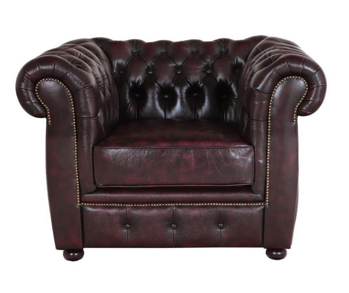 Chesterfield-Sofa mit einem Platz, gefertigt aus echtem Rindsleder, mit gesteppten und elegant abgerundeten Armlehnen, verleiht jedem Interieur einen Hauch von Luxus und Stil.
