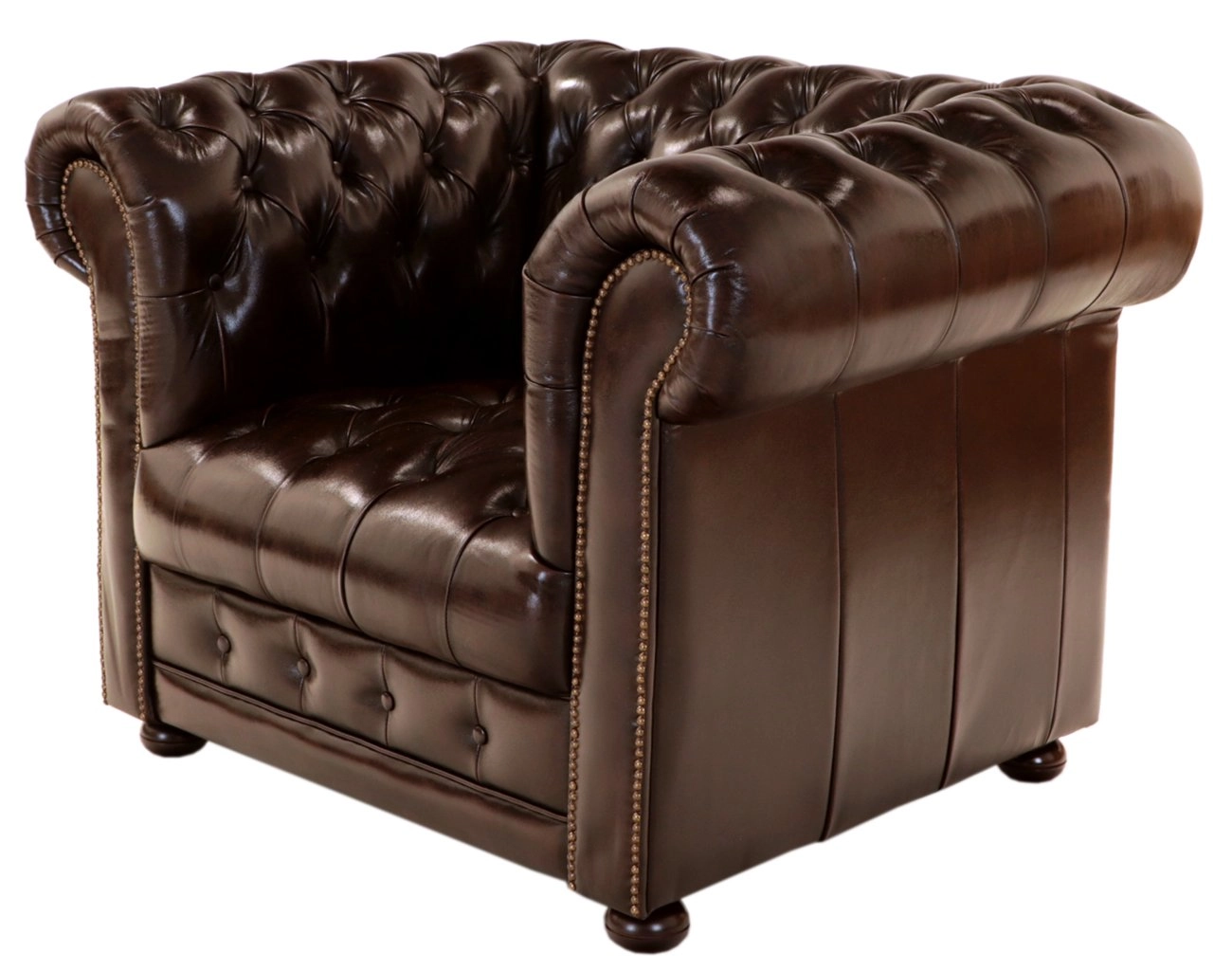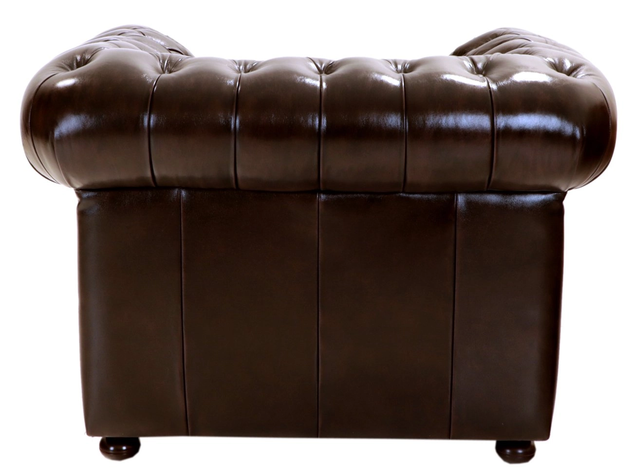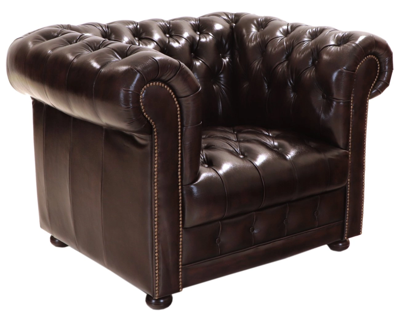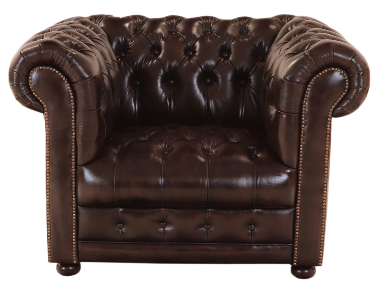 Chesterfield pohovka jednomístní vyrobena z pravé hovězí kůže s prošívanými a elegantně zaoblenými područkami vnese do každého interiéru nádech luxusu a stylu. Křesla Chesterfield, které máme skladem, si můžete prohlédnout v našem showroomu.