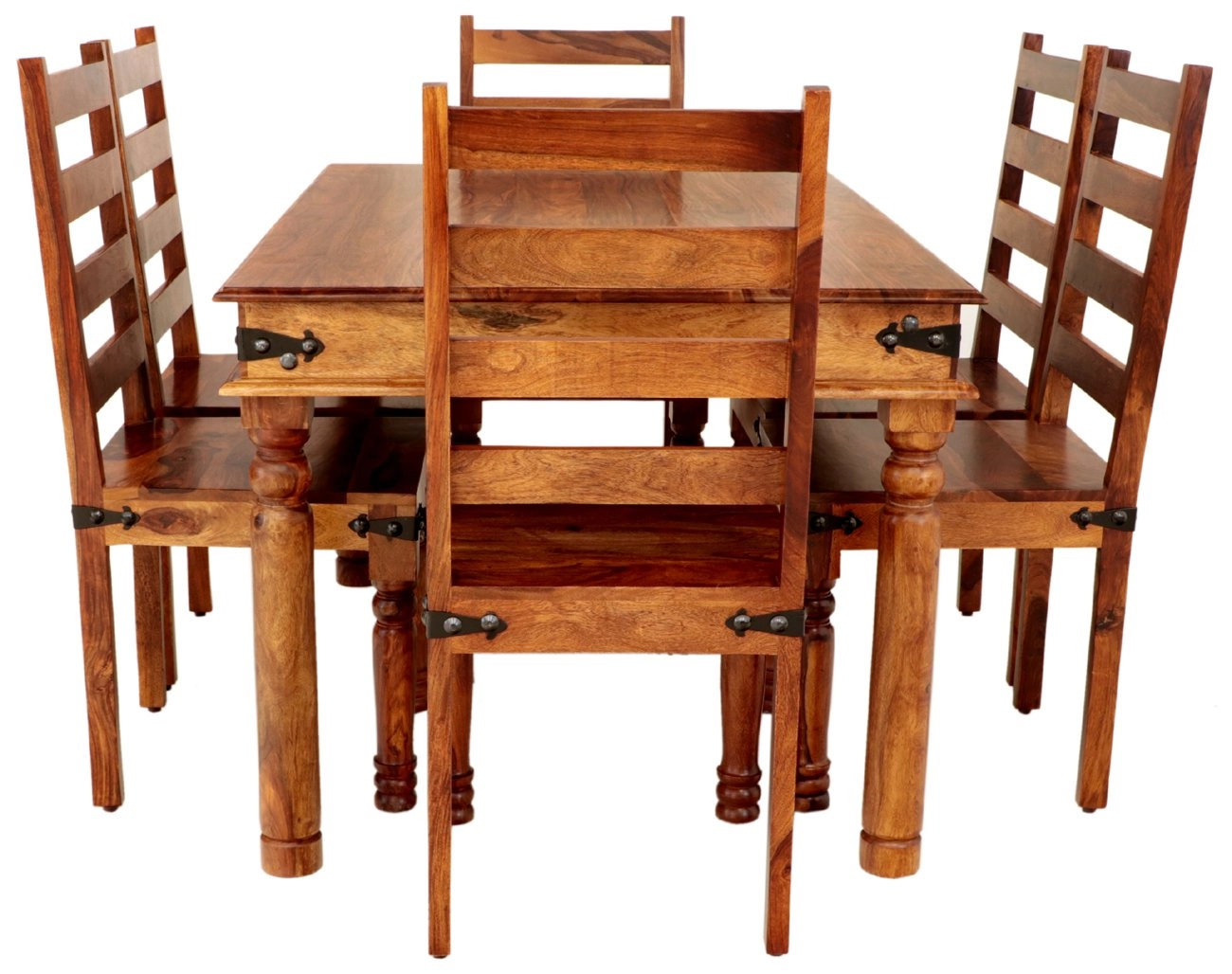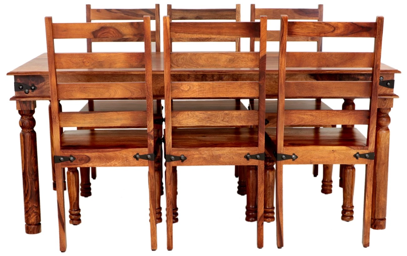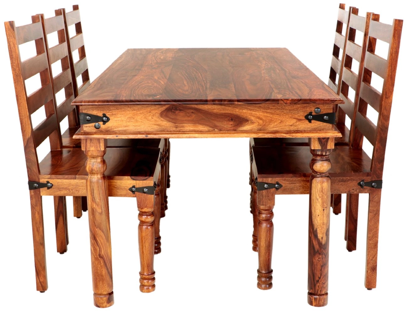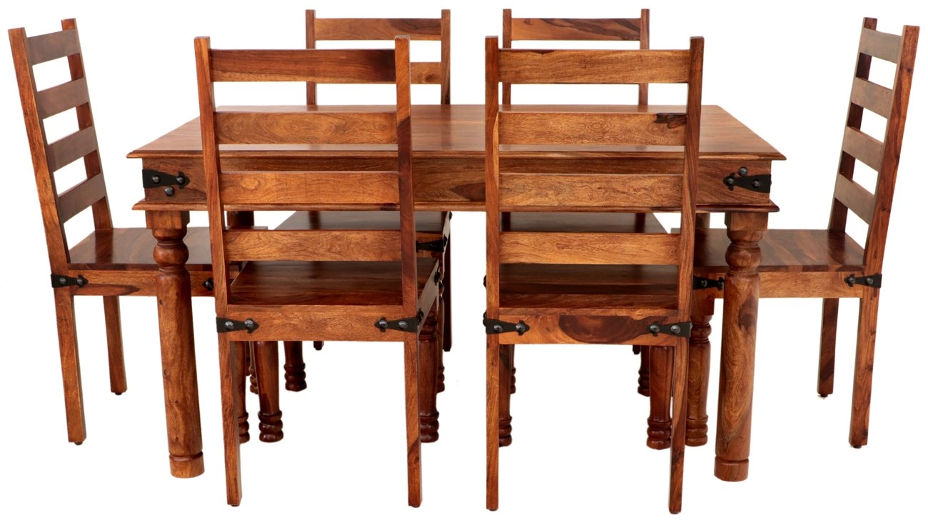 Jídelní set z masivu pro 6 osob je vyroben z kvalitního palisandrového dřeva.