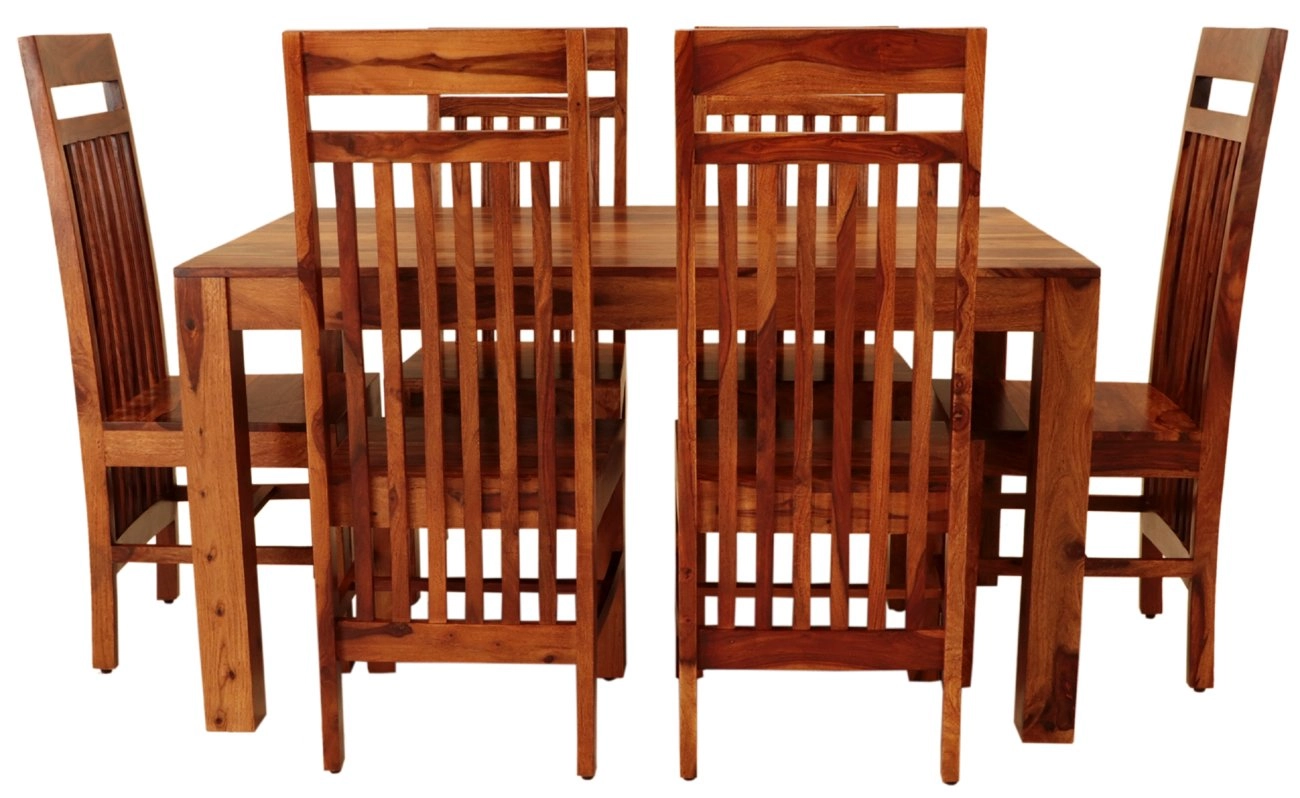 Jídelní set z masivu pro 6 osob je vyroben z kvalitního palisandrového dřeva.