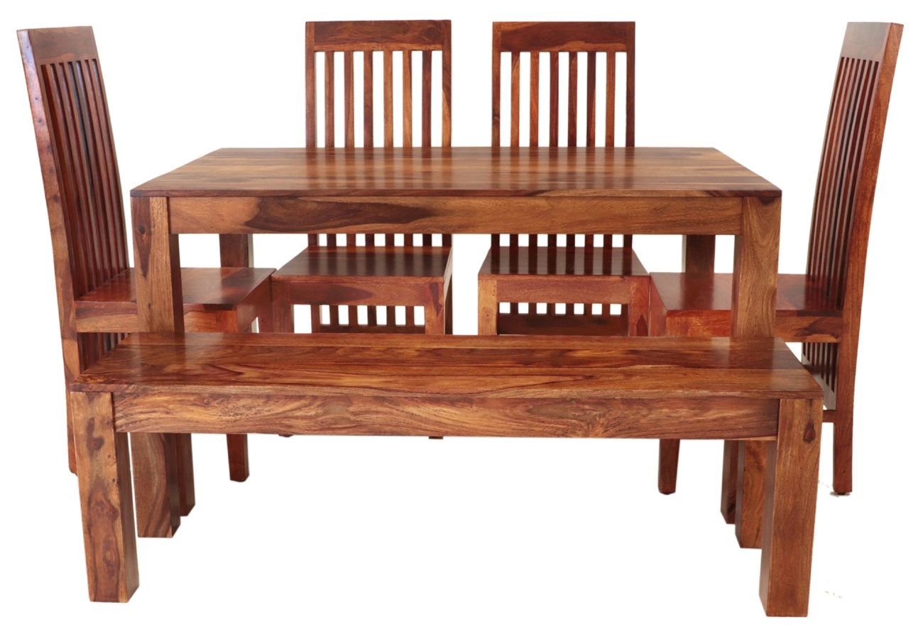 Jídelní set z masivu pro 6 osob je vyroben z kvalitního palisandrového dřeva.