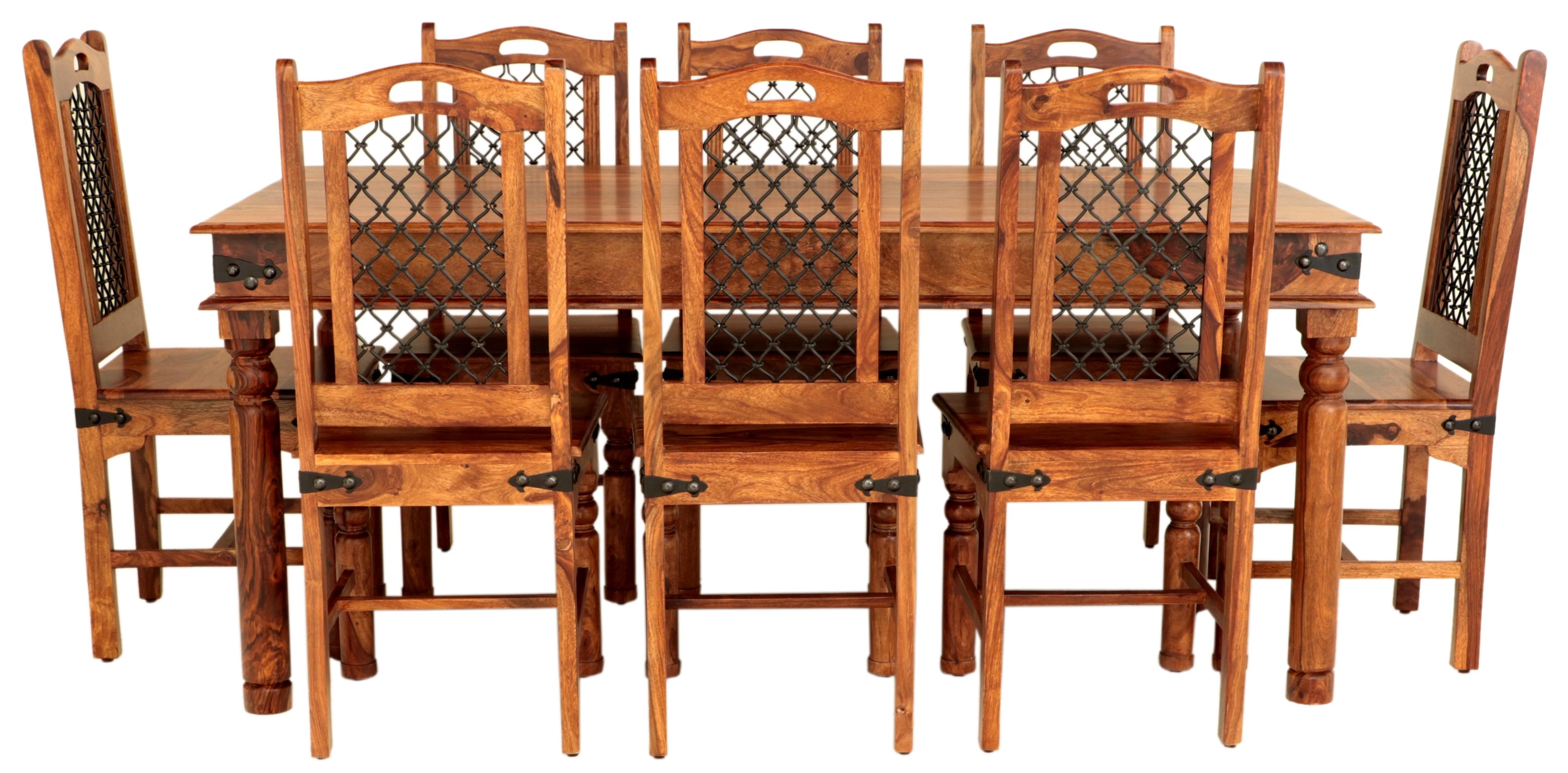 Jídelní set z masivu pro 8 osob je vyroben z kvalitního palisandrového dřeva.