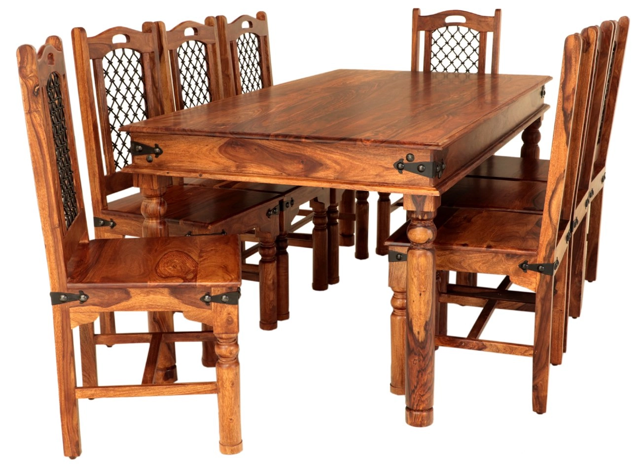 Jídelní set pro 8 osob z indického masivu palisandr je ideálním spojením elegance, trvanlivosti a exotického půvabu. Tento jídelní set, který zahrnuje jeden prostorný jídelní stůl a osm komfortních židlí, je vyroben z vysoce kvalitního palisandrového dřeva. Masivní nábytek z palisandru není jen klasickým symbolem trvanlivosti, ale přináší do vašeho domova také jedinečnou estetiku přírodního dřeva.