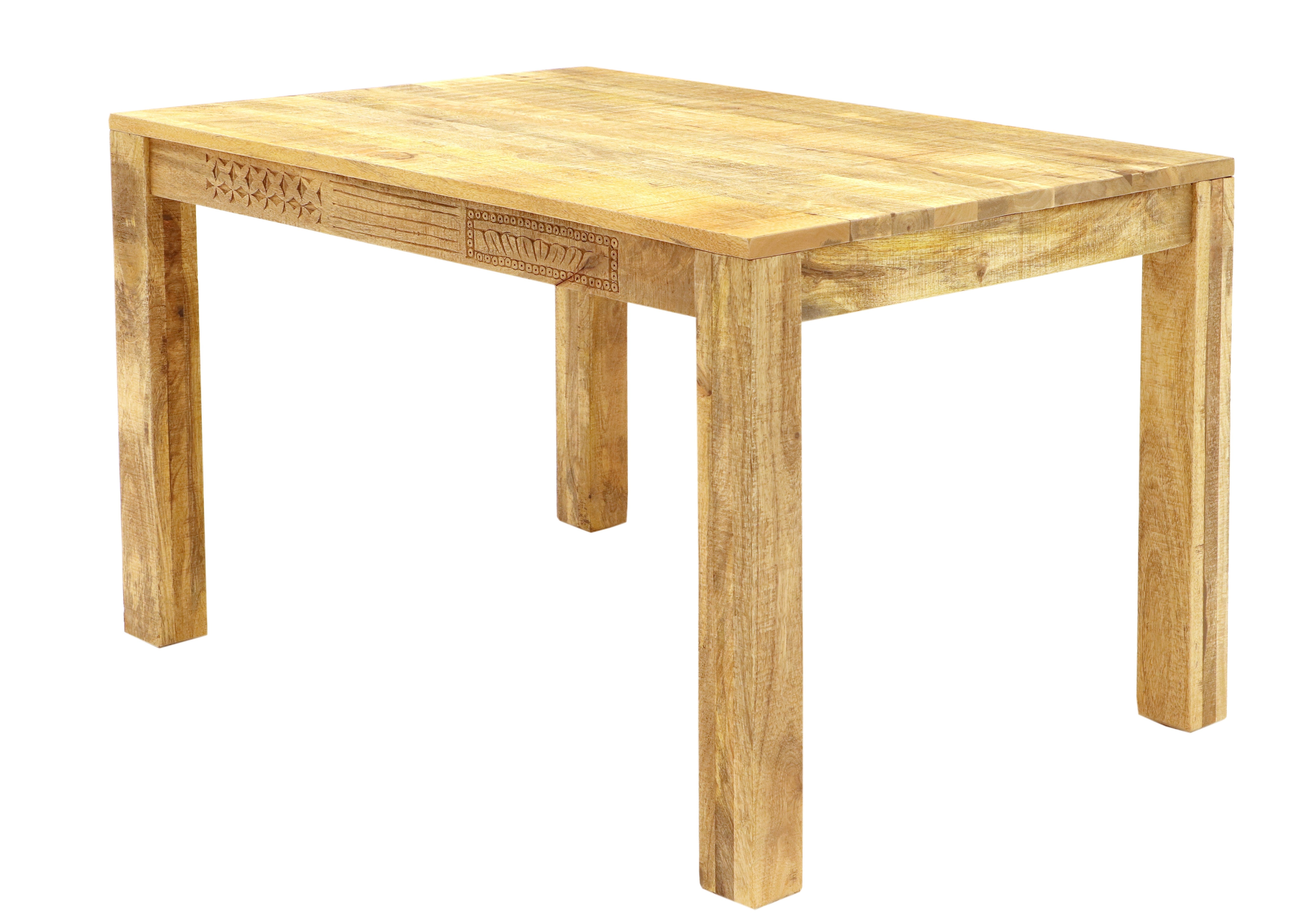 Jídelní stůl Manu 120x90 představuje ideální volbu pro každého, kdo touží po unikátním kousku do svého interiéru. Tento masiv jídelní stůl pochází z Indie, kraje známého pro své kvalitní zpracování dřeva a řemeslnou preciznost. Díky materiálu, kterým je mango, je stůl nejenom odolný, ale také krásně dekorativní. Jídelní stůl mango přináší do vašeho domova přírodní eleganci a přidává na originalitě každého prostoru.