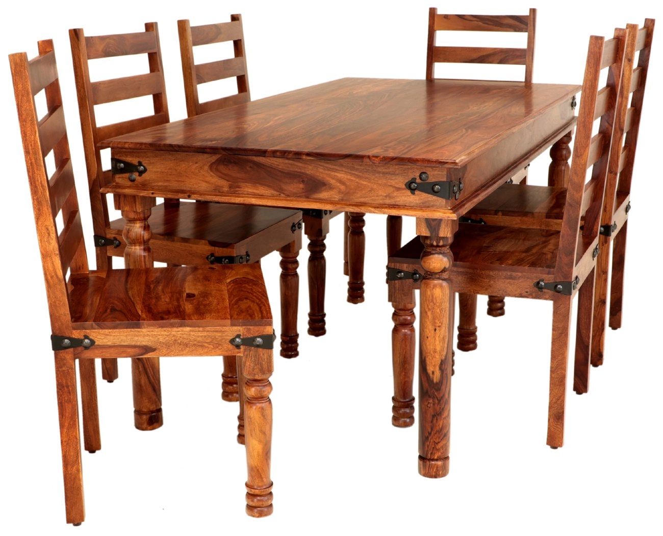Objevte dokonalou kombinaci elegance a odolnosti s naším Setem jídelní stůl a židle pro 6 osob z masivu palisandr. Tento set je součástí exkluzivní Kolekce JALI, která je známá svou kvalitou a jedinečným designem. Každý kus je pečlivě ručně vyroben v Indii, z masivního palisandru, což zaručuje vysokou trvanlivost a krásný vzhled.
