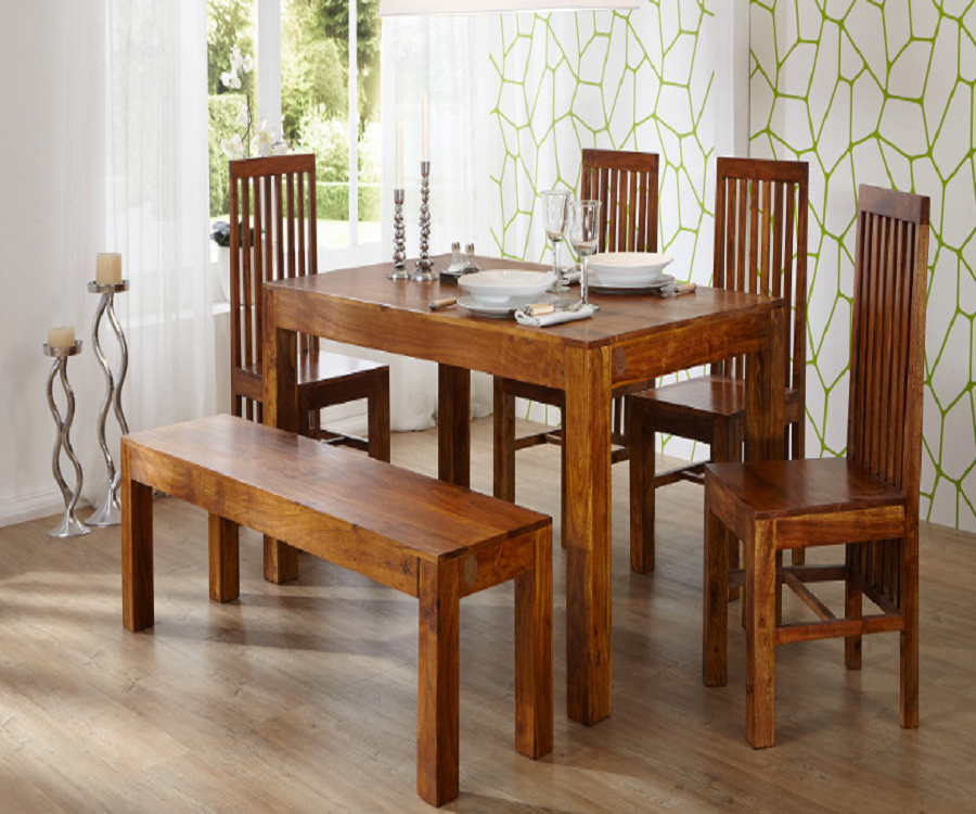 Objevte jedinečný jídelní set s lavicí z masivu, který dodá vaší jídelně autentický šarm a eleganci. Tento kvalitní jídelní set je ideální volbou pro každého, kdo ocení stylový design a zároveň se nehodlá spokojit s kompromisy na úkor kvality. Set je vyroben z prvotřídního dřeva palisandru, který je známý svým působivým vzhledem a odolností. Díky svým rozměrům se tento jídelní set s lavicí perfektně hodí pro středně velké rodiny nebo pro občasné večeře s přáteli, poněvadž pohodlně usadí až 6 osob.