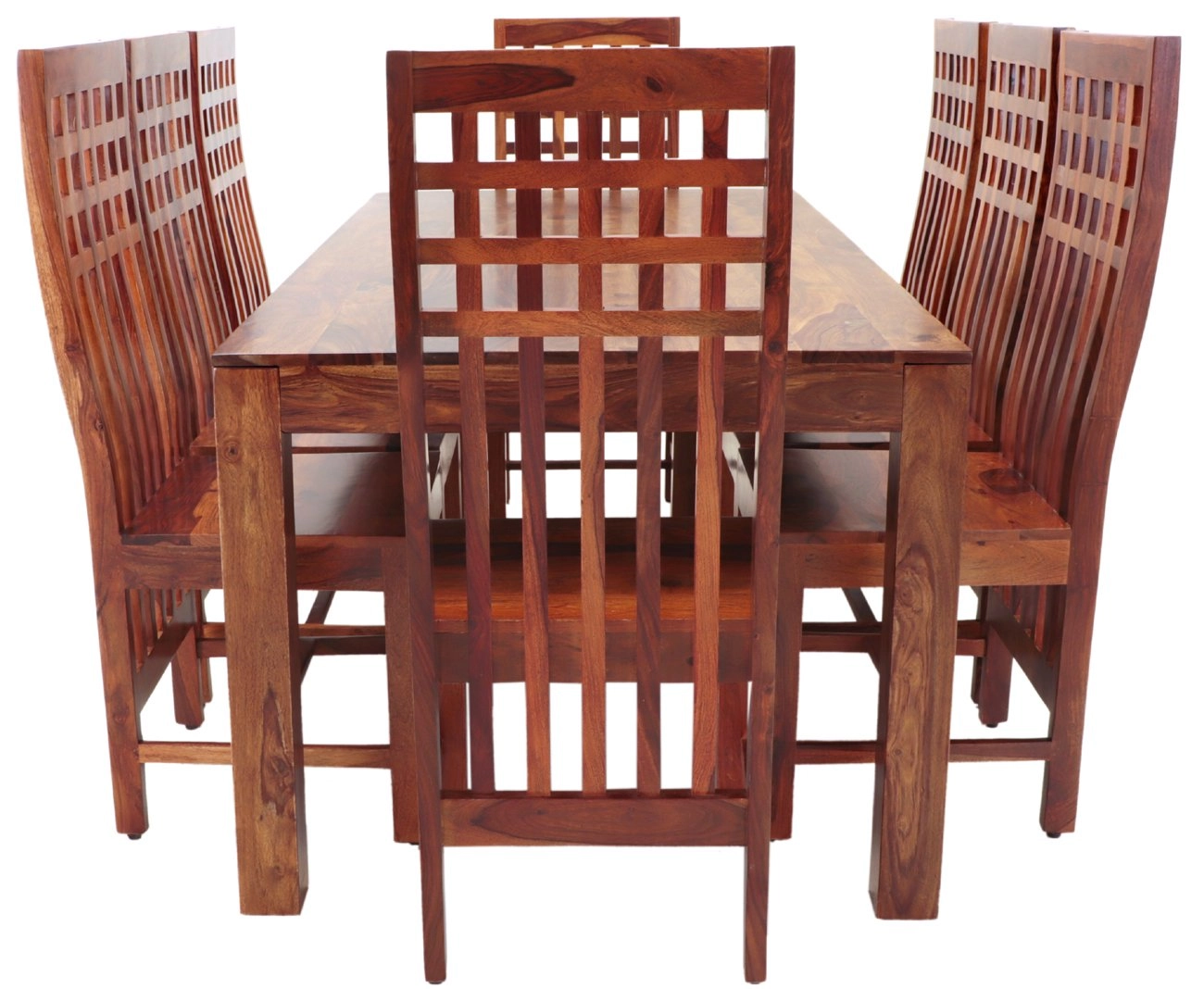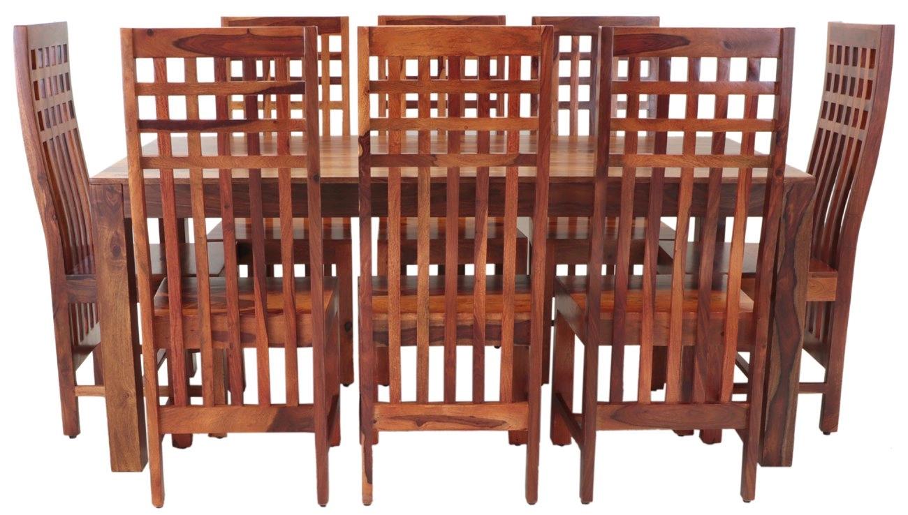 Jídelní set z masivu pro 8 osob je vyroben z kvalitního palisandrového dřeva.