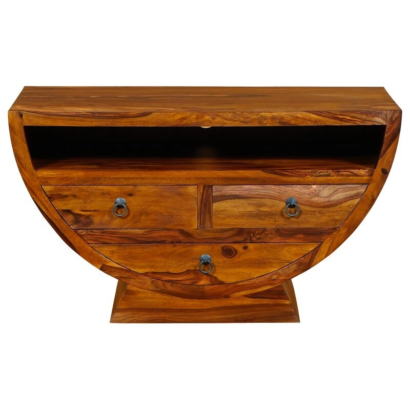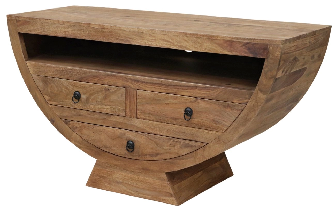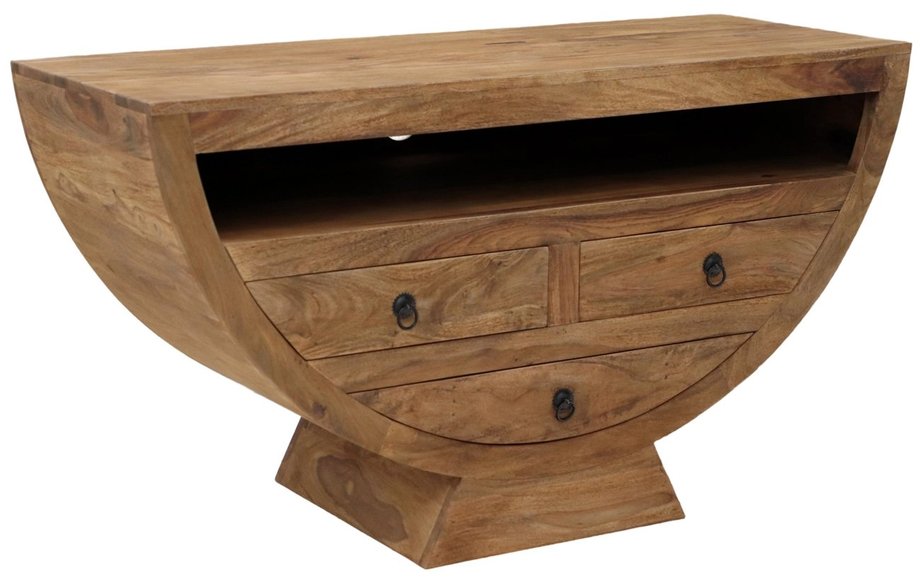 Televizní stolek masiv palisandr o rozměrech 120x65x45 cm je jedinečným kusem nábytku, který skvěle doplní váš obývací pokoj. Díky svému původu v Indii tento TV stolek spojuje kvalitu a exotický design, který z vašeho interiéru udělá prostor plný charakteru a elegance. Masivní konstrukce z palisandru přináší nejen dlouhou životnost, ale také okouzlující texturu a přirozené odstíny dřeva, které každému kusu dodávají unikátní vzhled.
