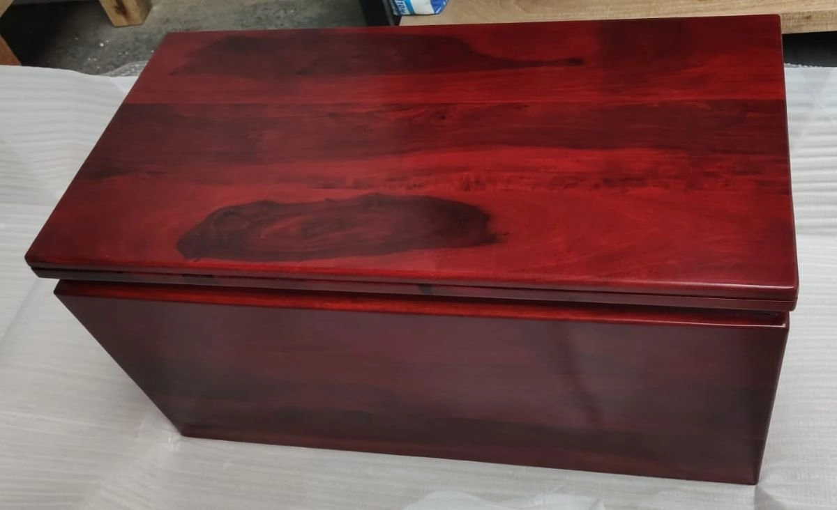 Palisandr je známý pro svou trvanlivost a přírodní krásu, což zajišťuje, že tato velká dřevěná truhla nejen vyřeší vaše úložné potřeby, ale také dodá vašemu pokoji nevšední eleganci. Elegantní a sofistikovaný design truhly je doplněn jemnými liniemi a přirozenou kresbou dřeva, což ji činí ideálním doplňkem jak do obývacího pokoje, tak do ložnice.