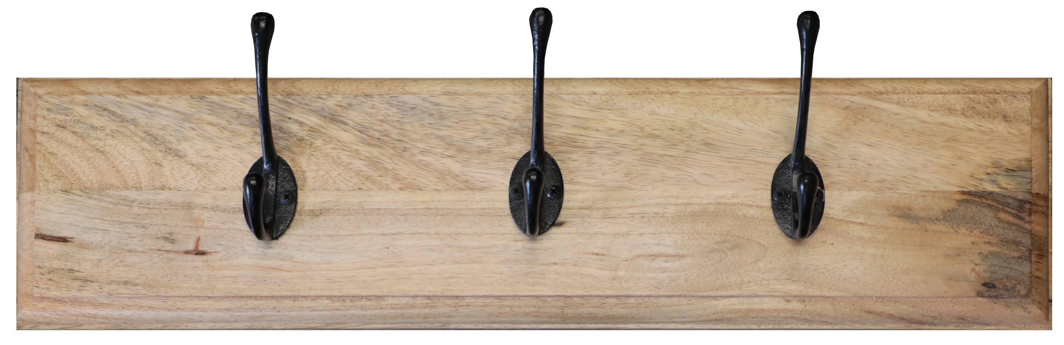 Věšák z masivu s 3 háčky je vyroben z indického manga. Věšáky na zeď z masivu, které máme skladem, si můžete prohlédnout v našem showroomu. Indický koloniální nábytek mango masiv.